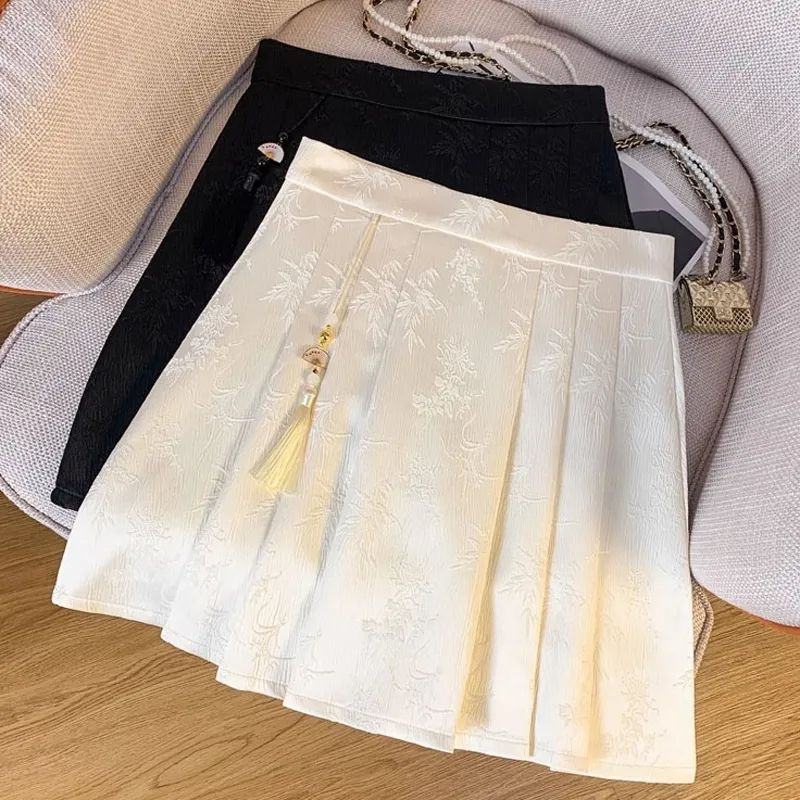 (裏地あり) 新中国風ジャカード百シワスカート女性夏の新型ハイウエストA字スカート卸売り