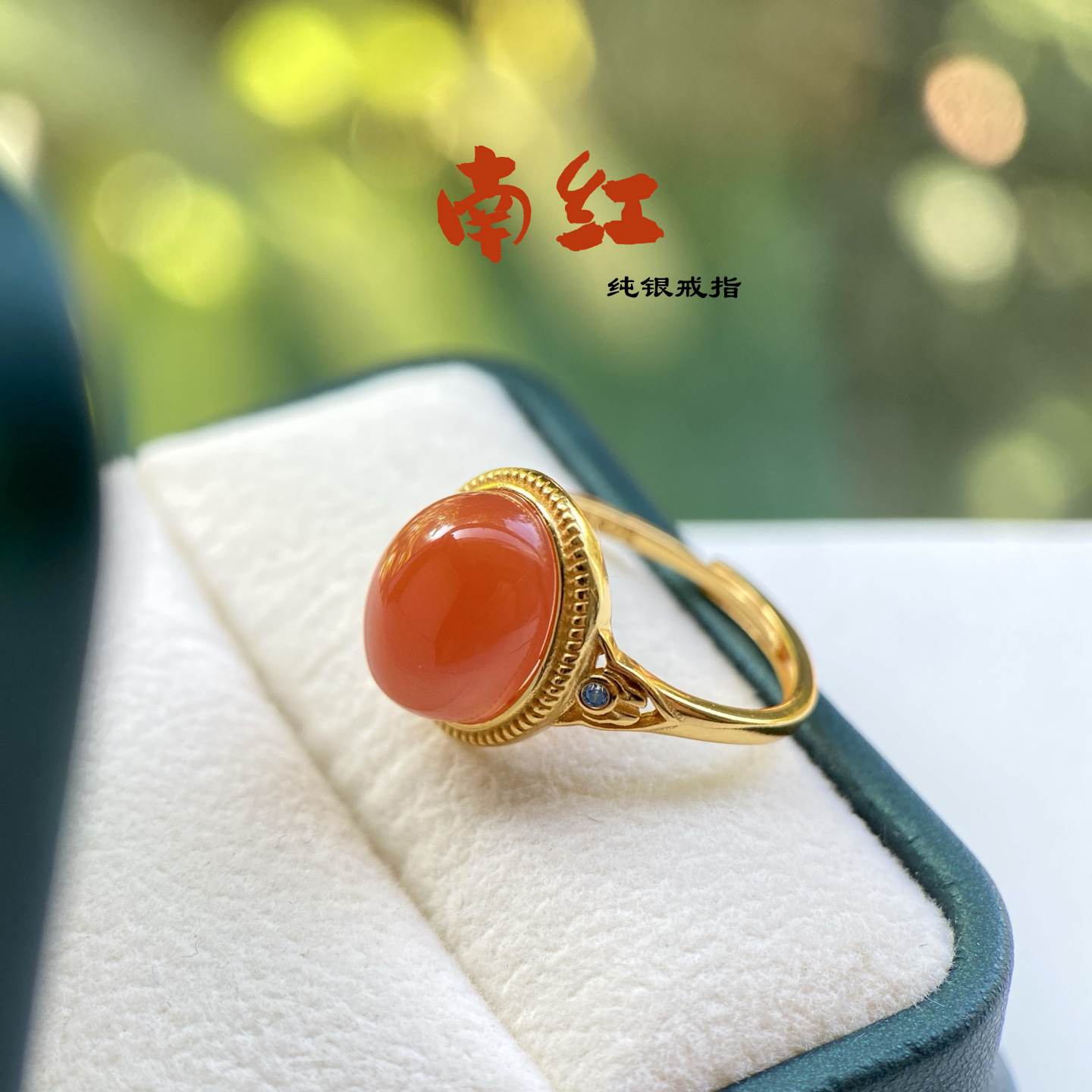 天然川料南红蛋面戒指真货S925纯银高端品质鸽子蛋南红戒指大蛋面