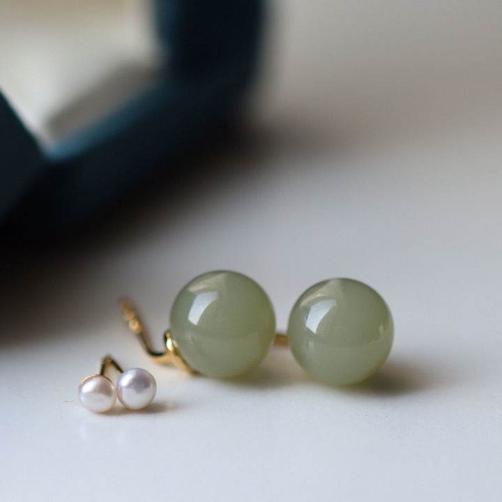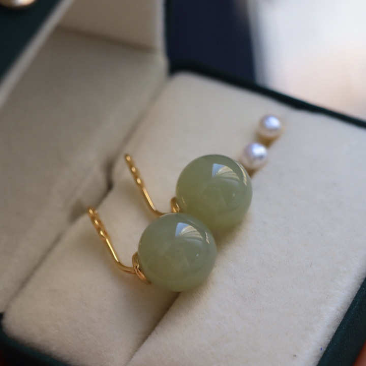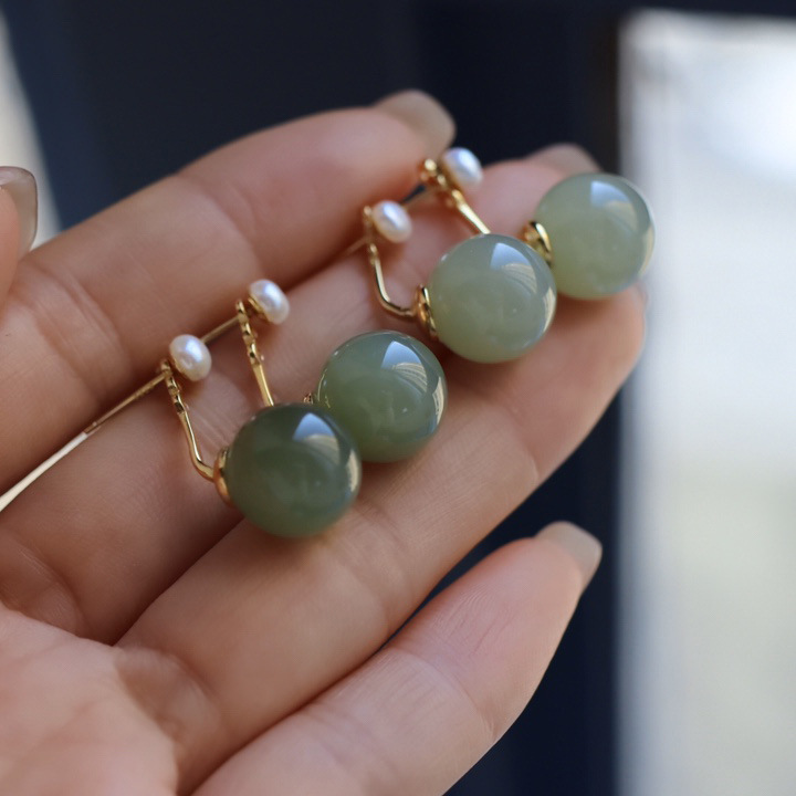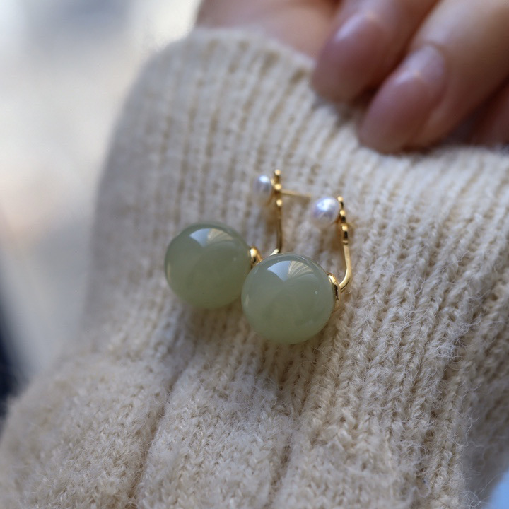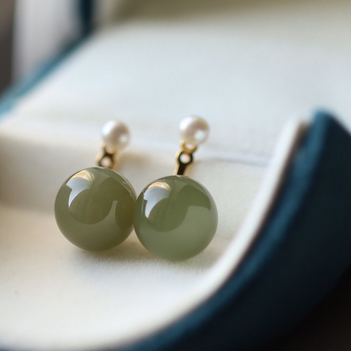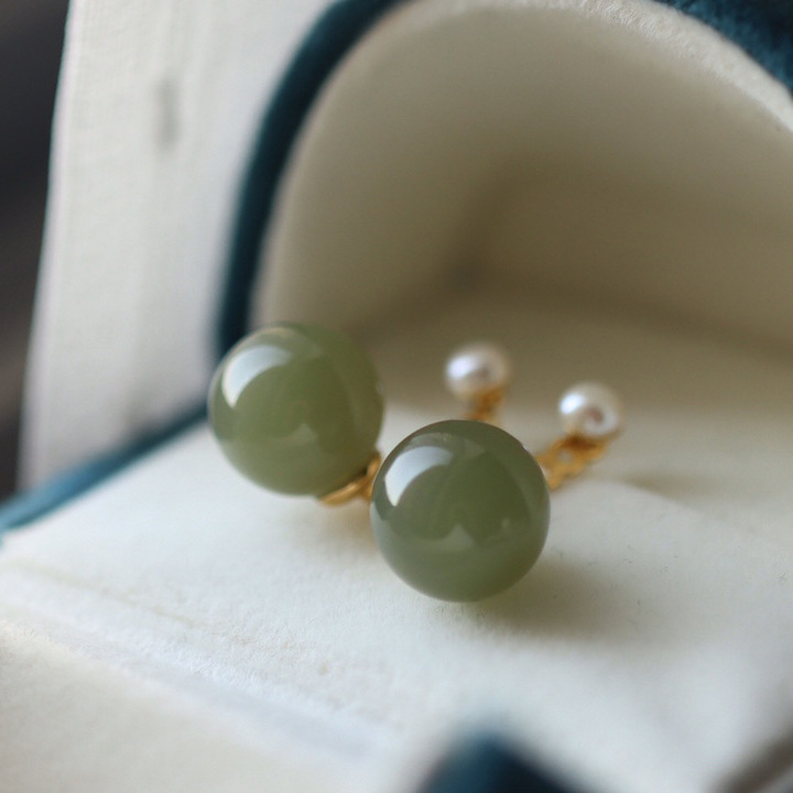 S925銀は天然和田玉ピアス氷晴水と田玉ピアス真珠ブドウ玉イヤリング工場卸売り