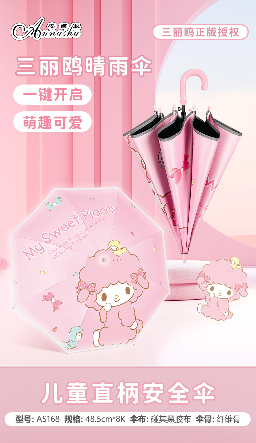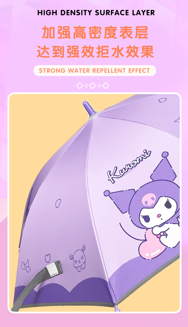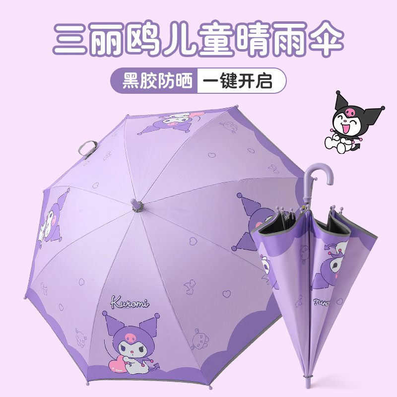 サンリオ正規版子供長柄傘学生通学専用高顔値男女の子日焼け止め黒ゴム傘