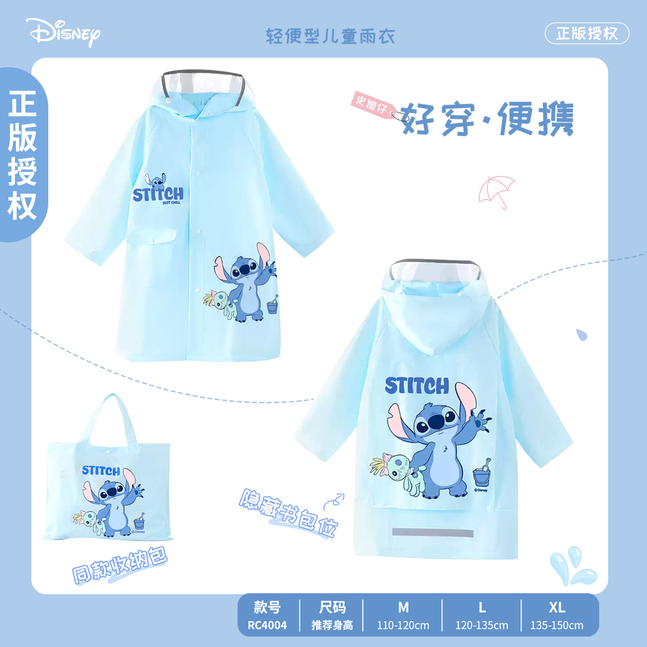 正規版いちご熊スティッチレインコートの大きなつば防水服とかばんのついた学生の屋外全身防水レインコート