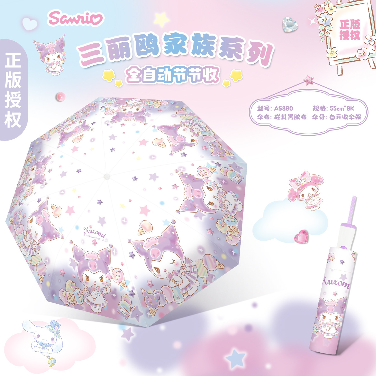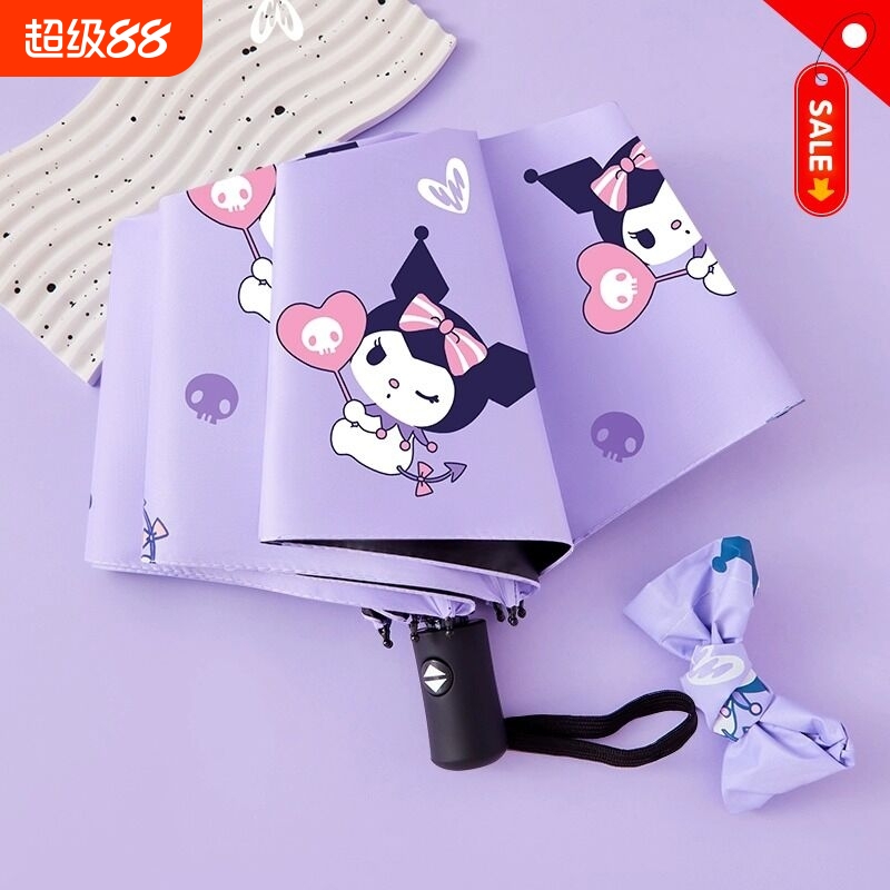 三丽鸥正版库洛米自动可爱卡通五折遮阳太阳伞晴雨防晒伞logo