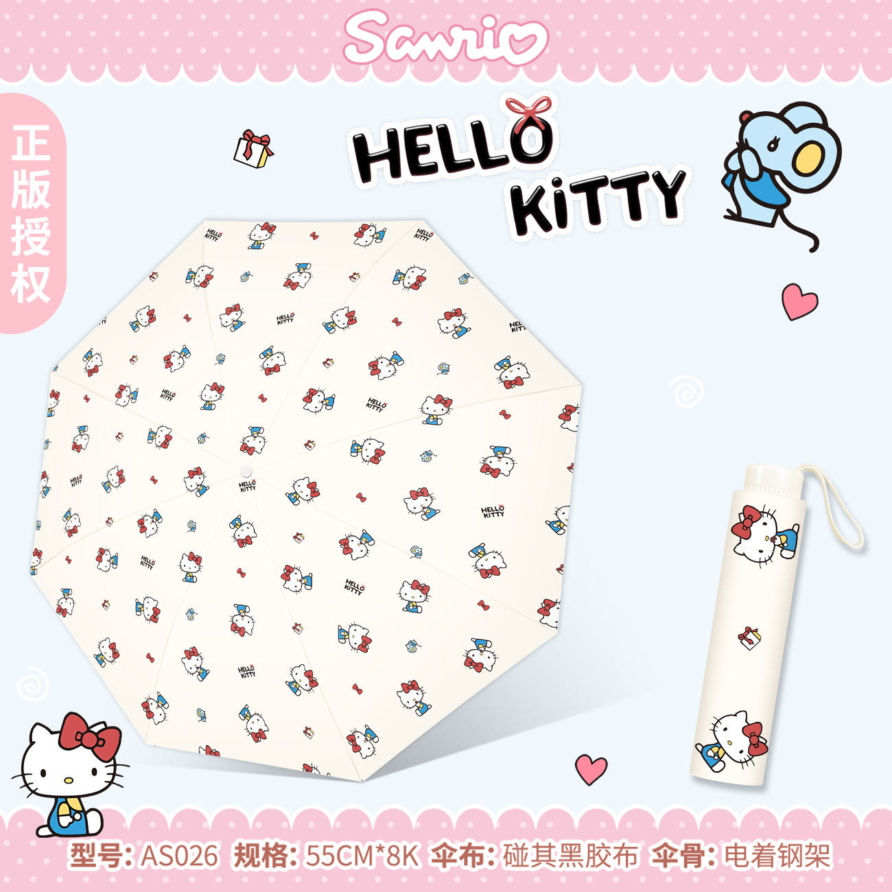 正規版サンリオ傘黒ゴム日除け傘晴雨両用日焼け止め紫外線防止携帯アニメ三つ折り傘