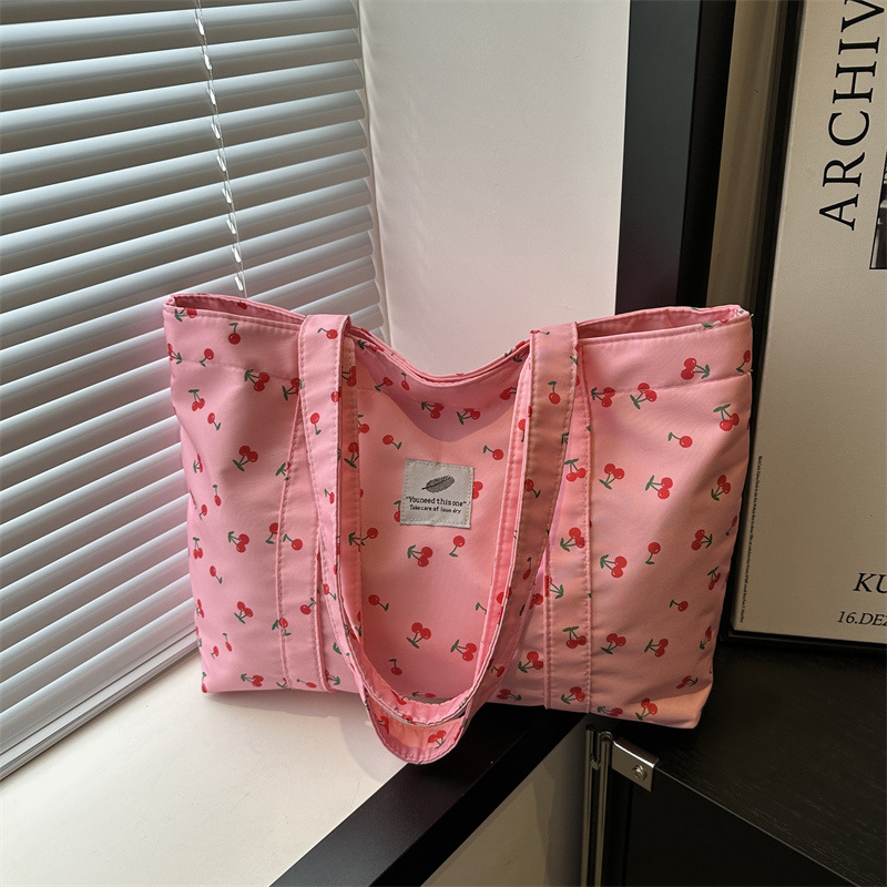 ファッショナブルな小さな新鮮なチェリープリントトートバッグ 2025 夏の新大容量外国風花柄ショルダーバッグレディースバッグ