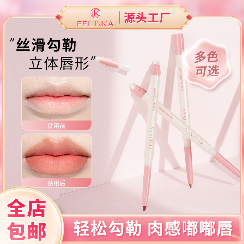 妃琳卡轻纱柔雾唇线笔女双头勾勒唇形柔顺丝滑晕染无痕哑光口红笔