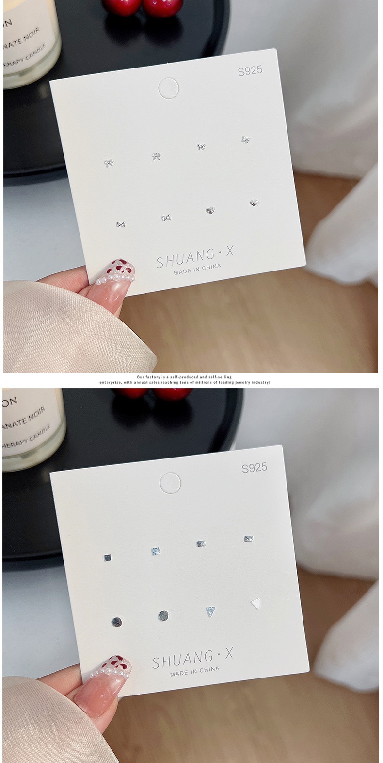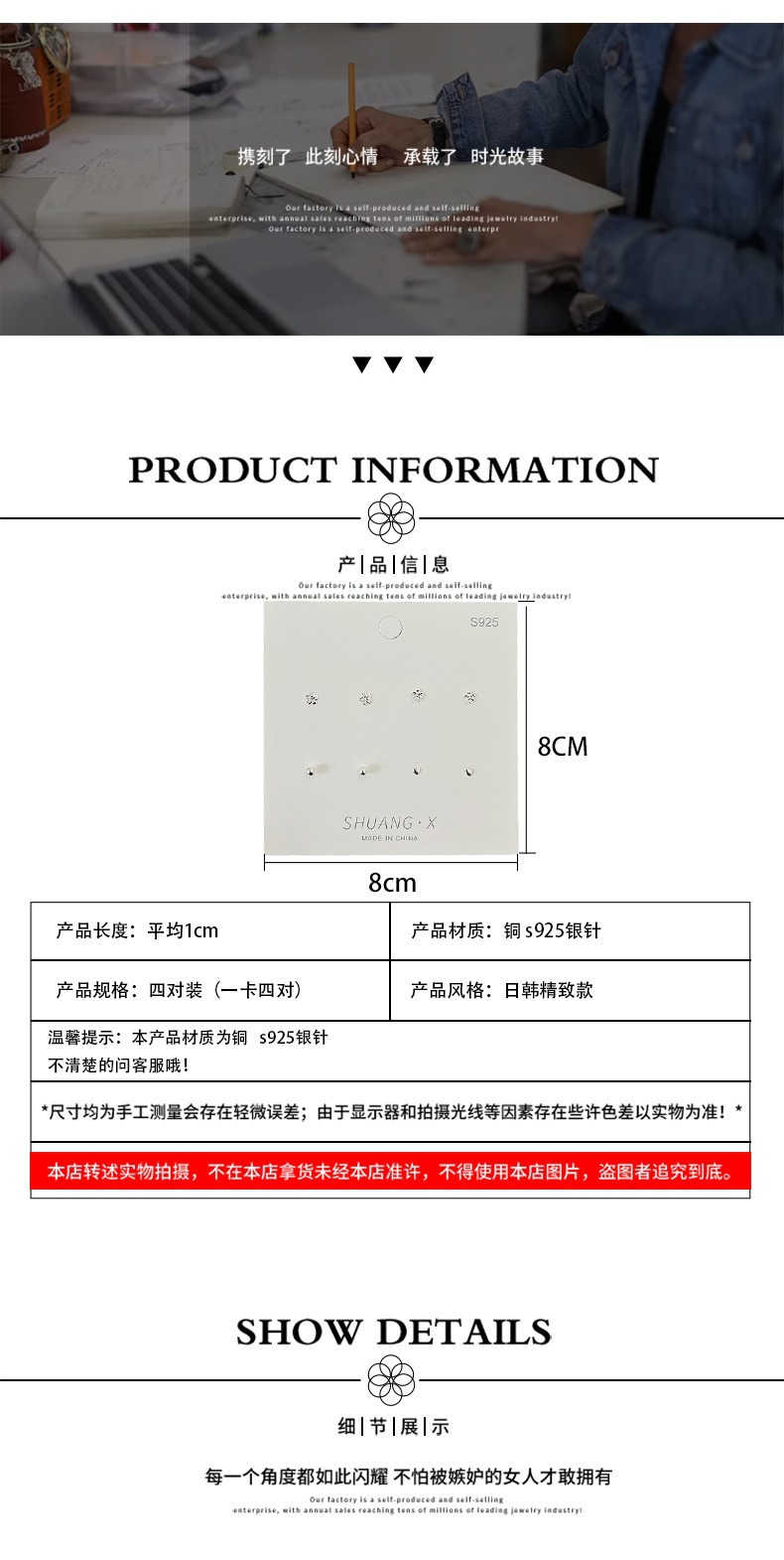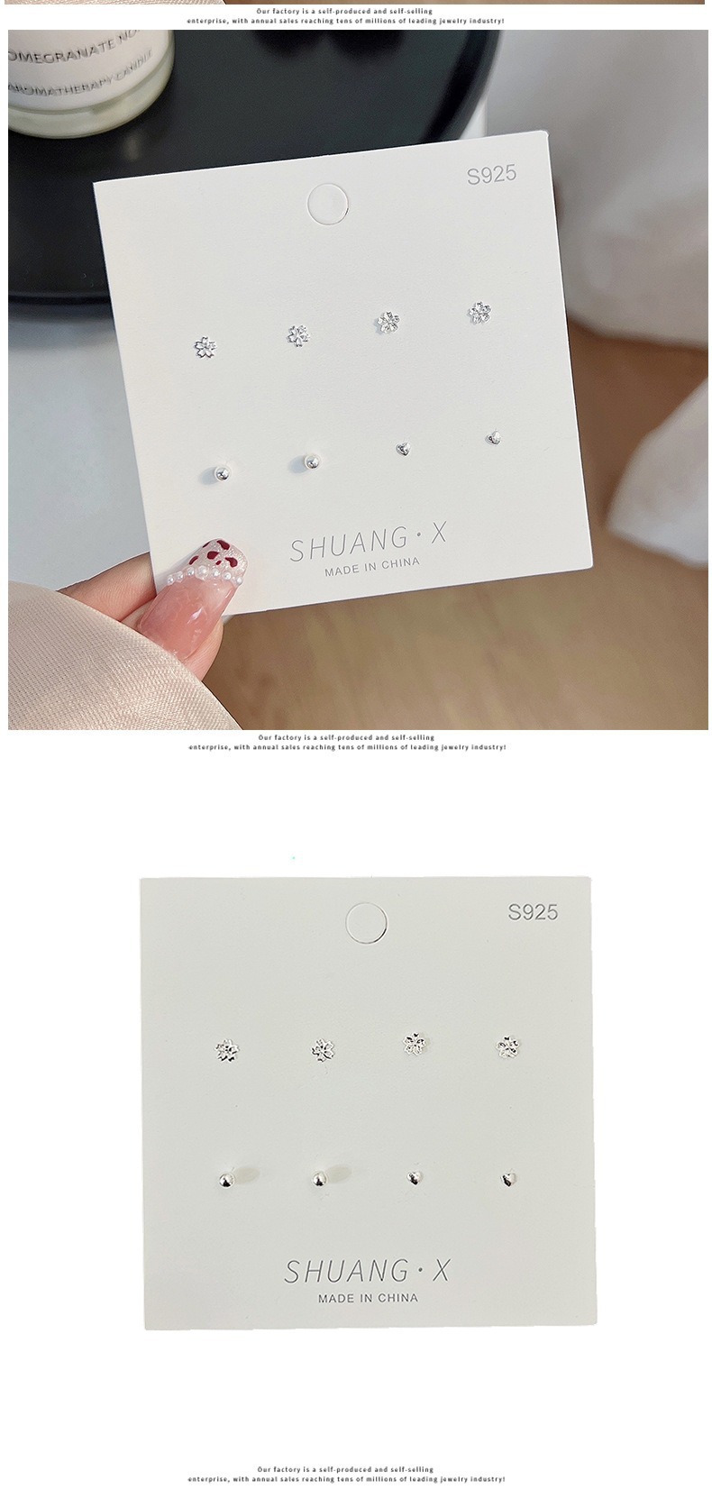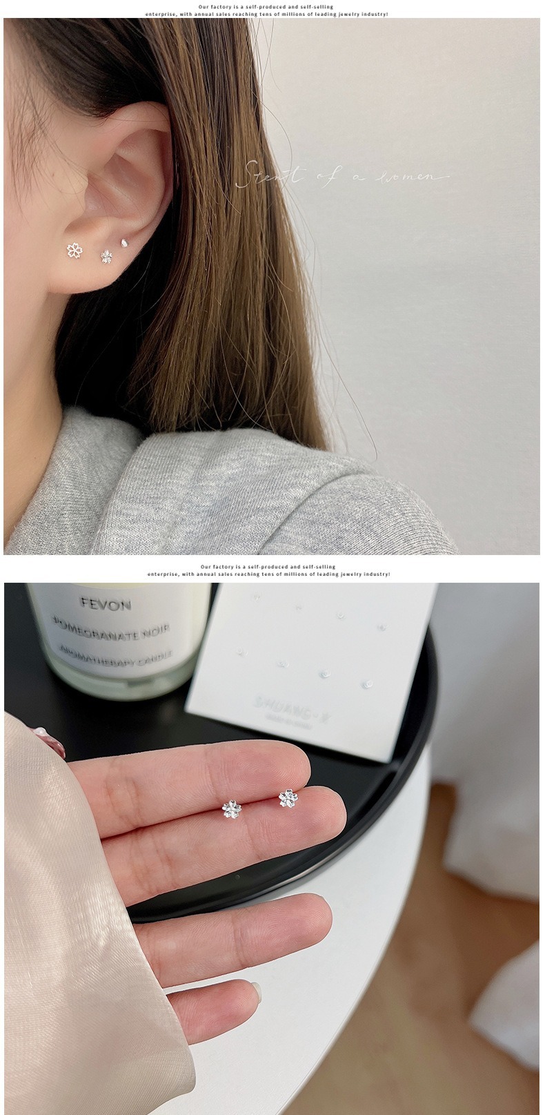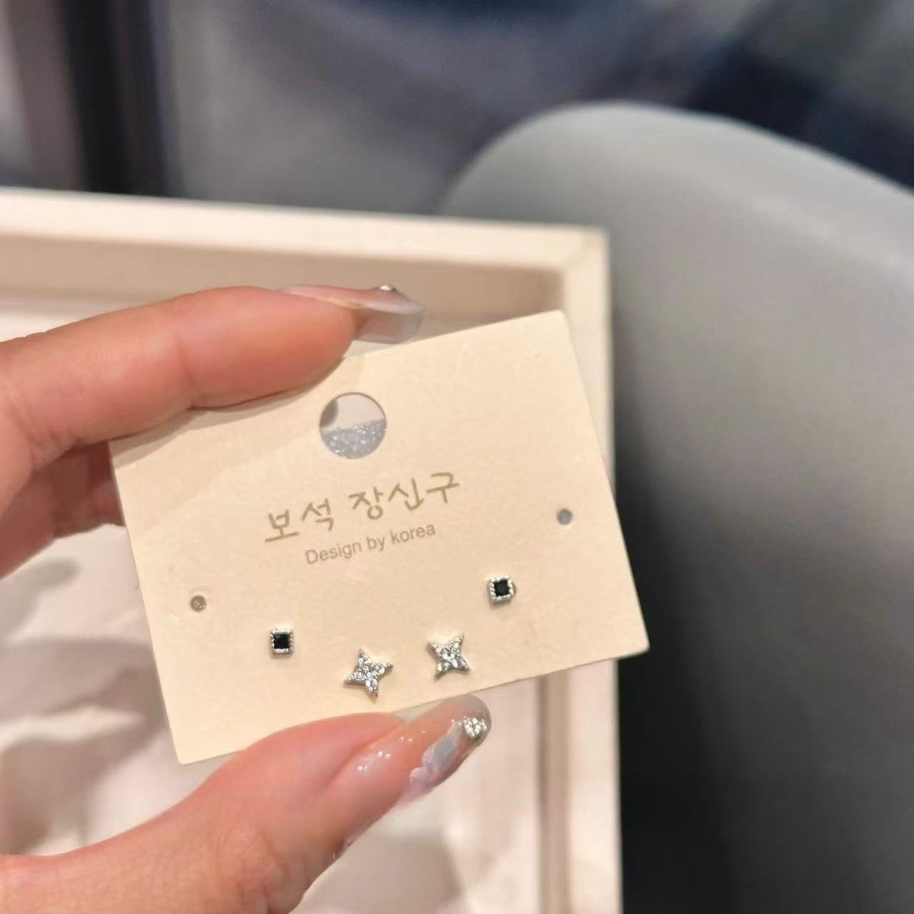S925銀針超閃小衆精緻耳針三点セット女性シンプルで小型愛耳骨釘耳飾り