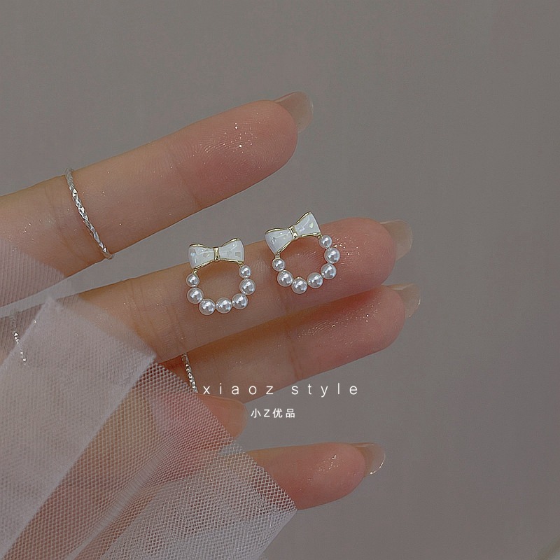 優しい蝶結びのピアス925銀針の貝殻の真珠の円形の小さくて精巧なイヤリングのイヤリングの女性の春の夏の新しいです。
