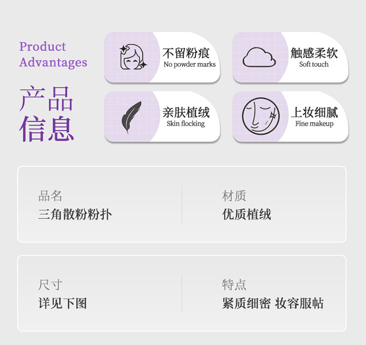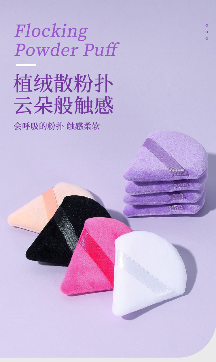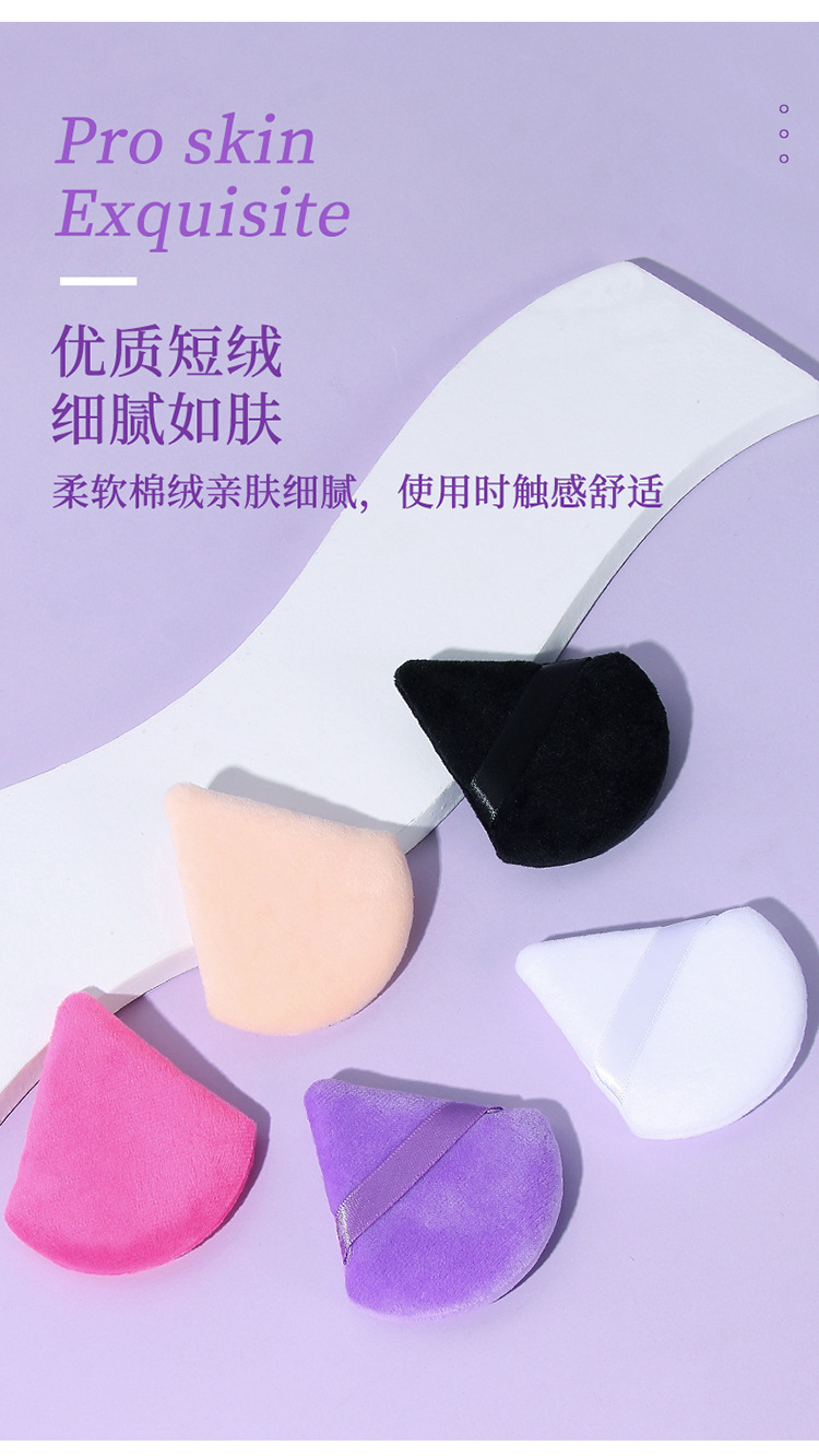 三角形パウダーパフ、扇形植毛エアパフ、短毛スポンジ、立毛パフ、メイク固定用卸売、越境専用メイクパフ