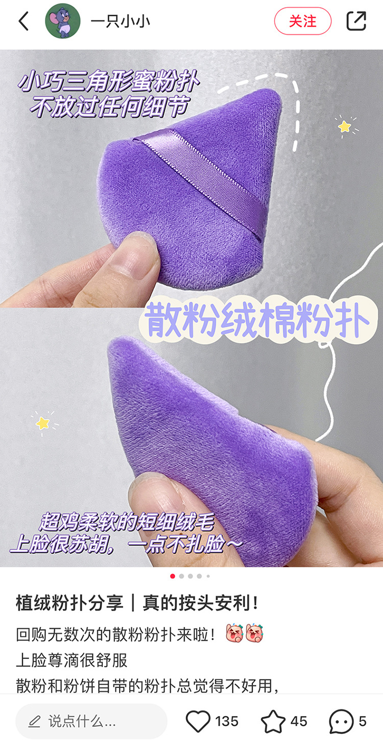 三角綿縦ベルベットルースパウダーパフ植毛エアクッションスエードパウダーケーキ特殊スポンジメイクアップセッティングコットンパフ