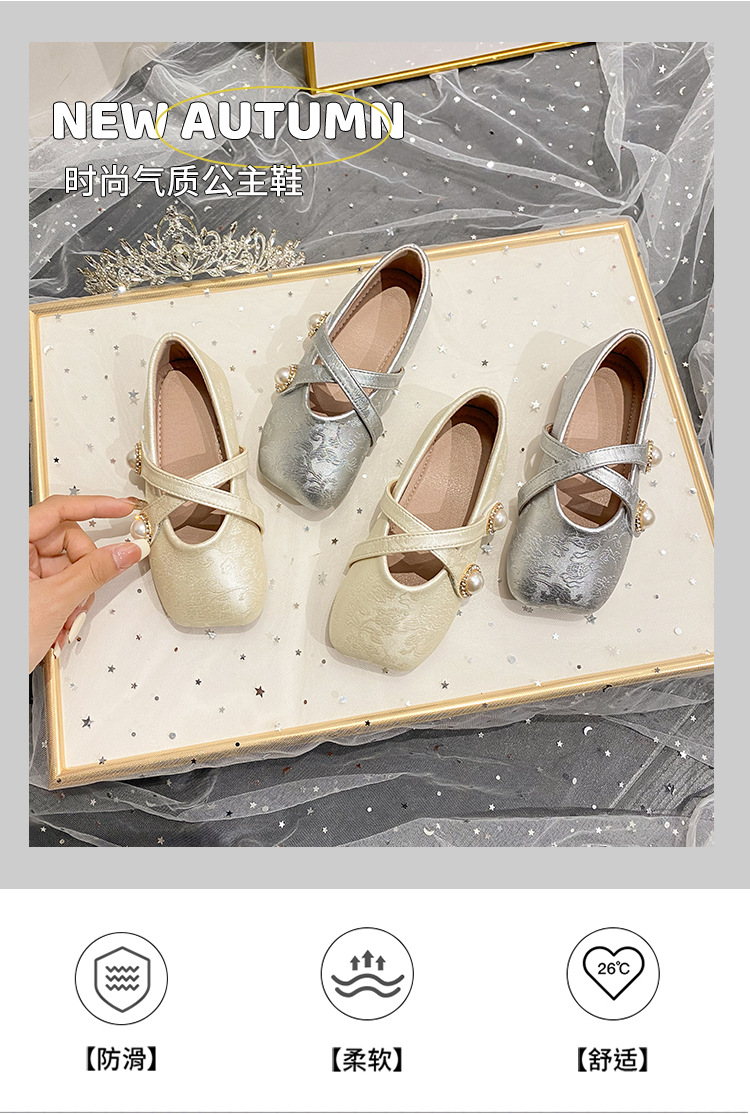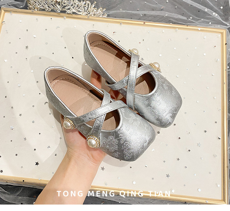 女の子ハイヒール2025春の新しい子供の靴の柔らかい底の女の子は王女の靴の女の宝の靴を演じます。