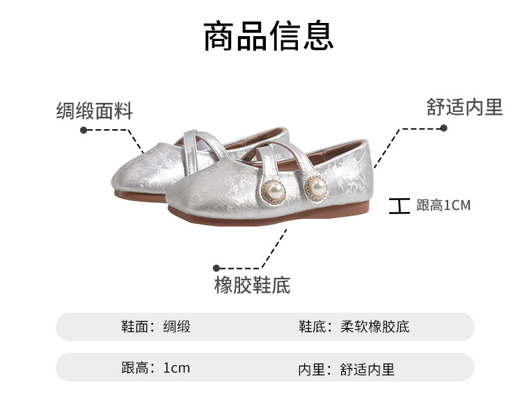 女の子の漢服の靴2024新型春秋新中国風の女の子の靴の柔らかい底の王女の靴の子供の小さい靴