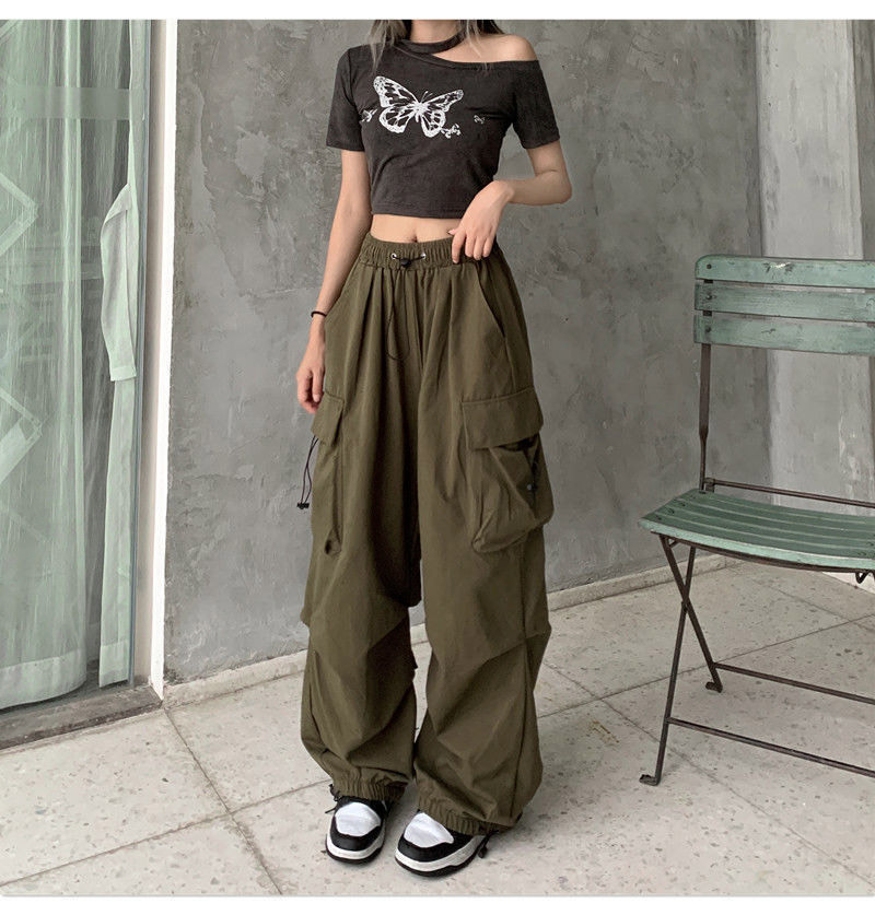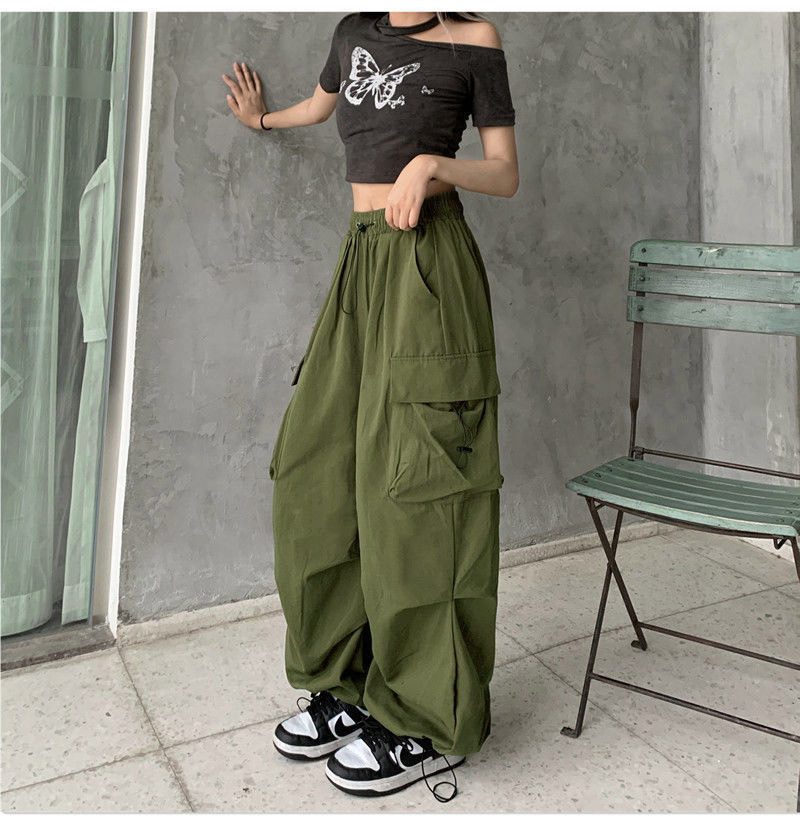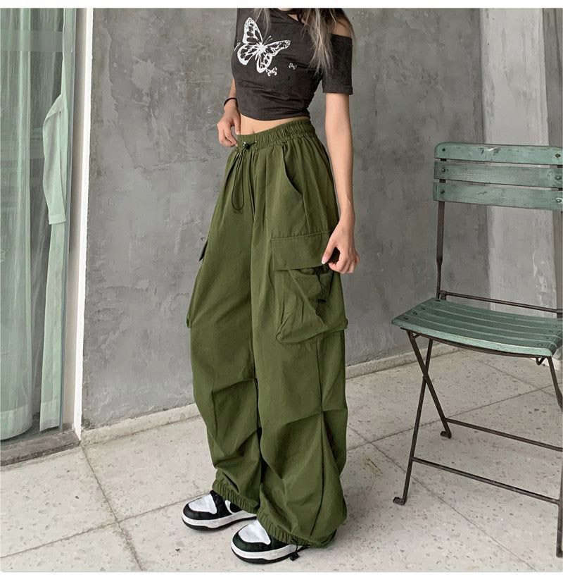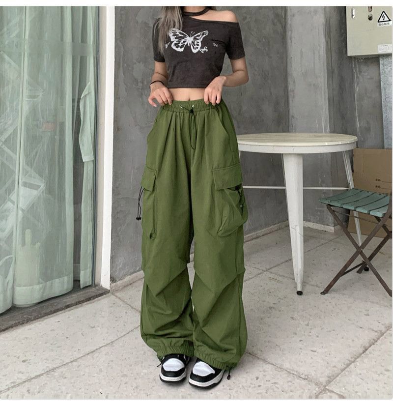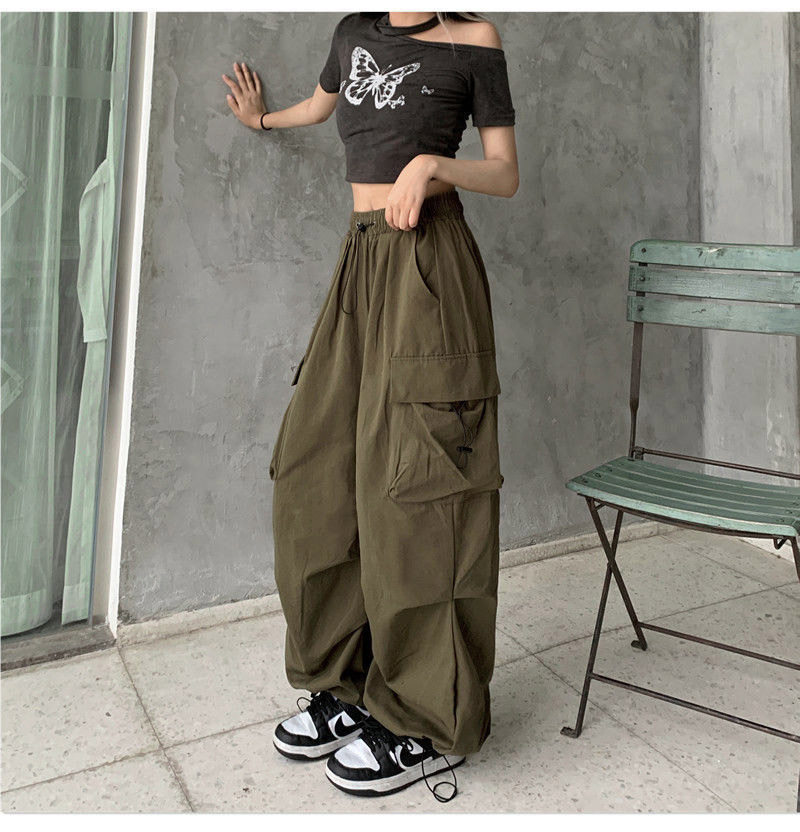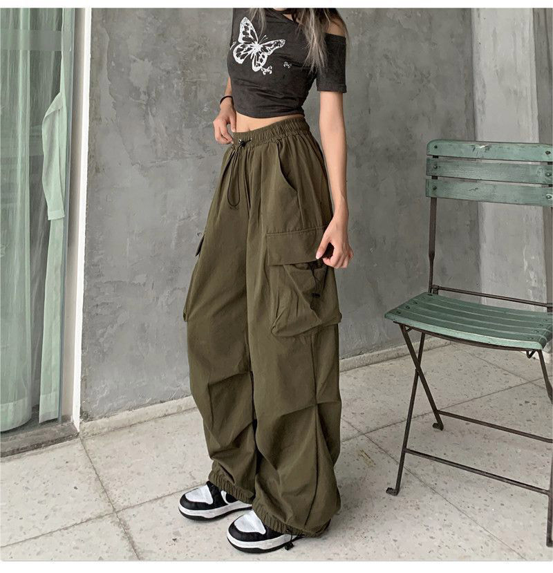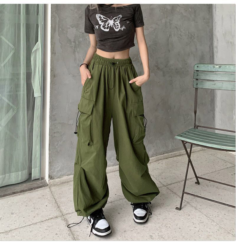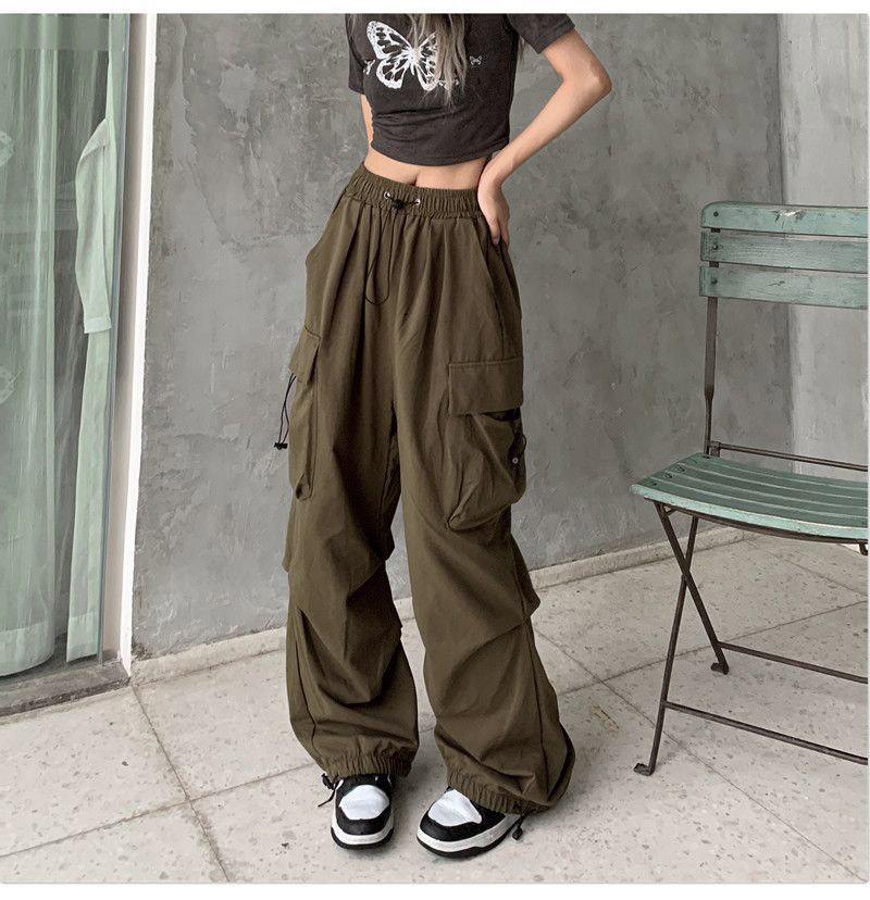 女子の速乾の仕事のズボンの女性の夏の新型のアメリカ式のパラシュートのズボンの高い腰の広い足のレジャーの口のスポーツのズボン