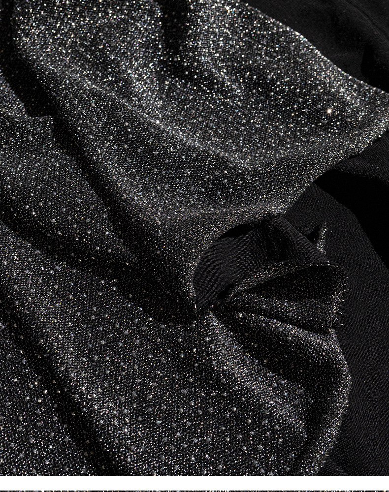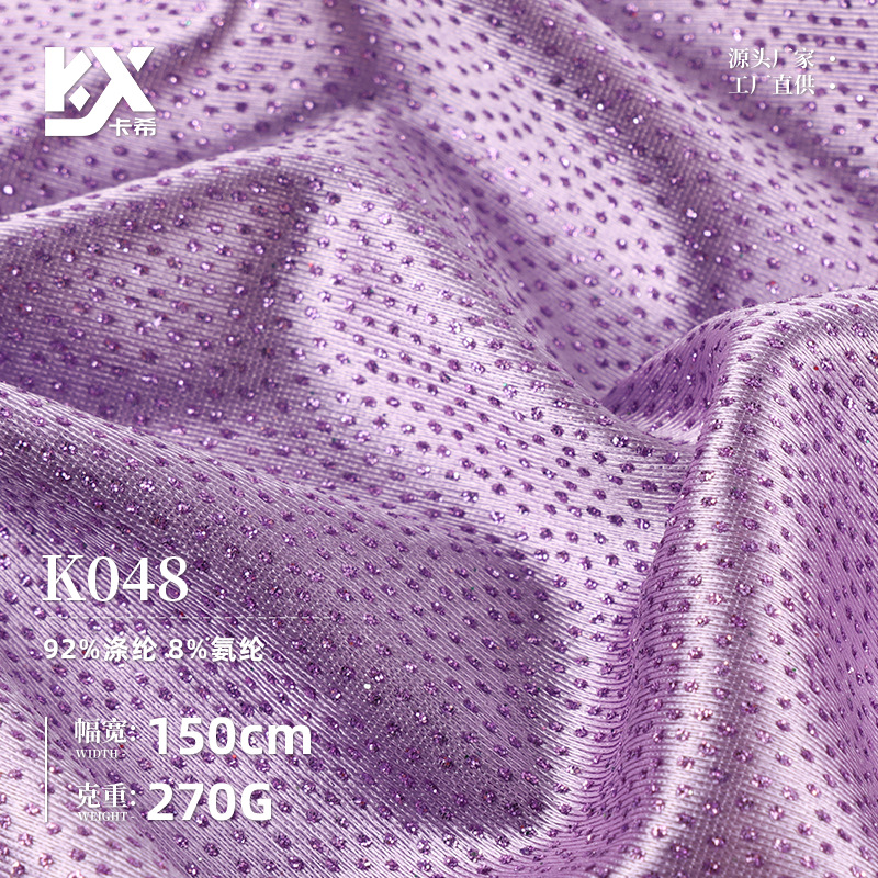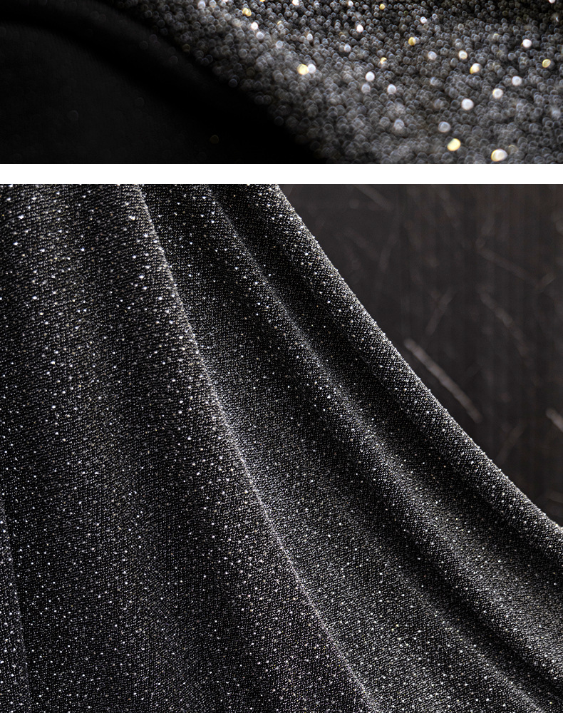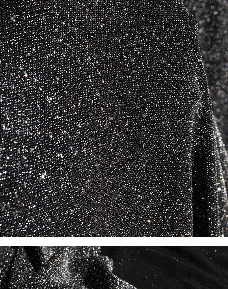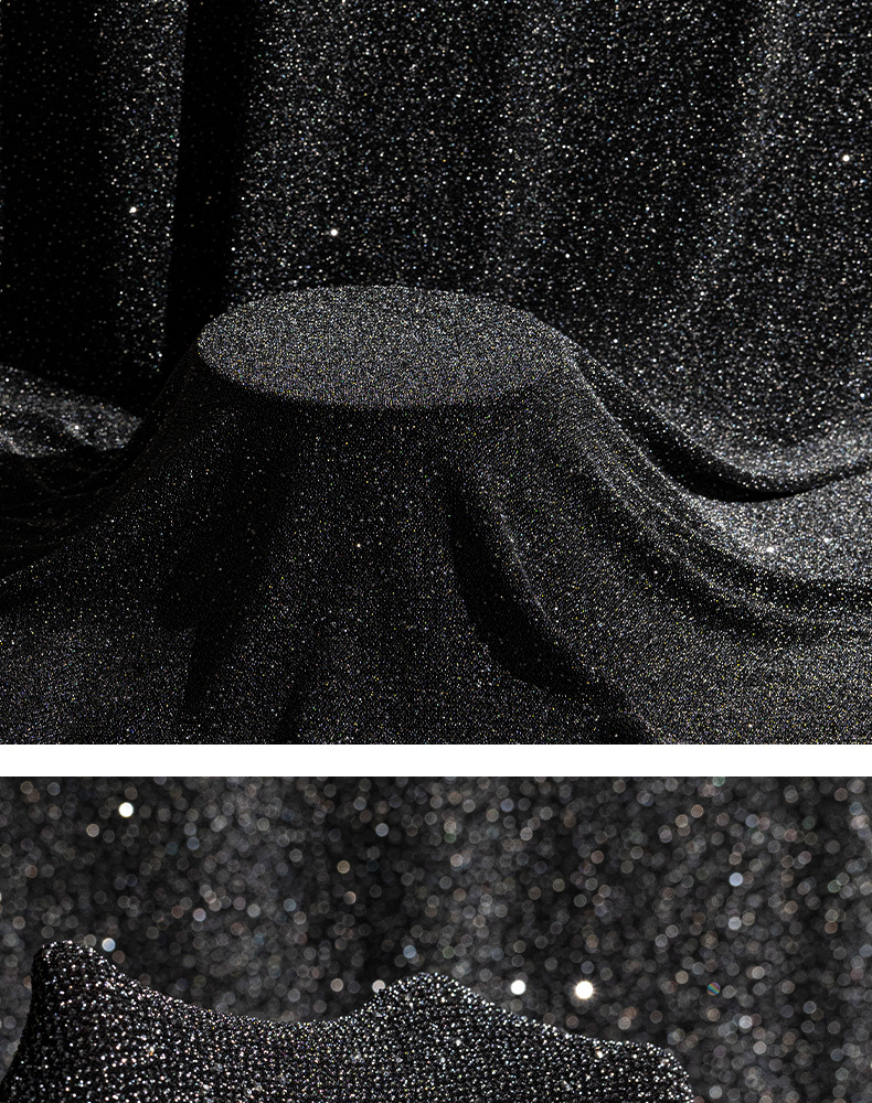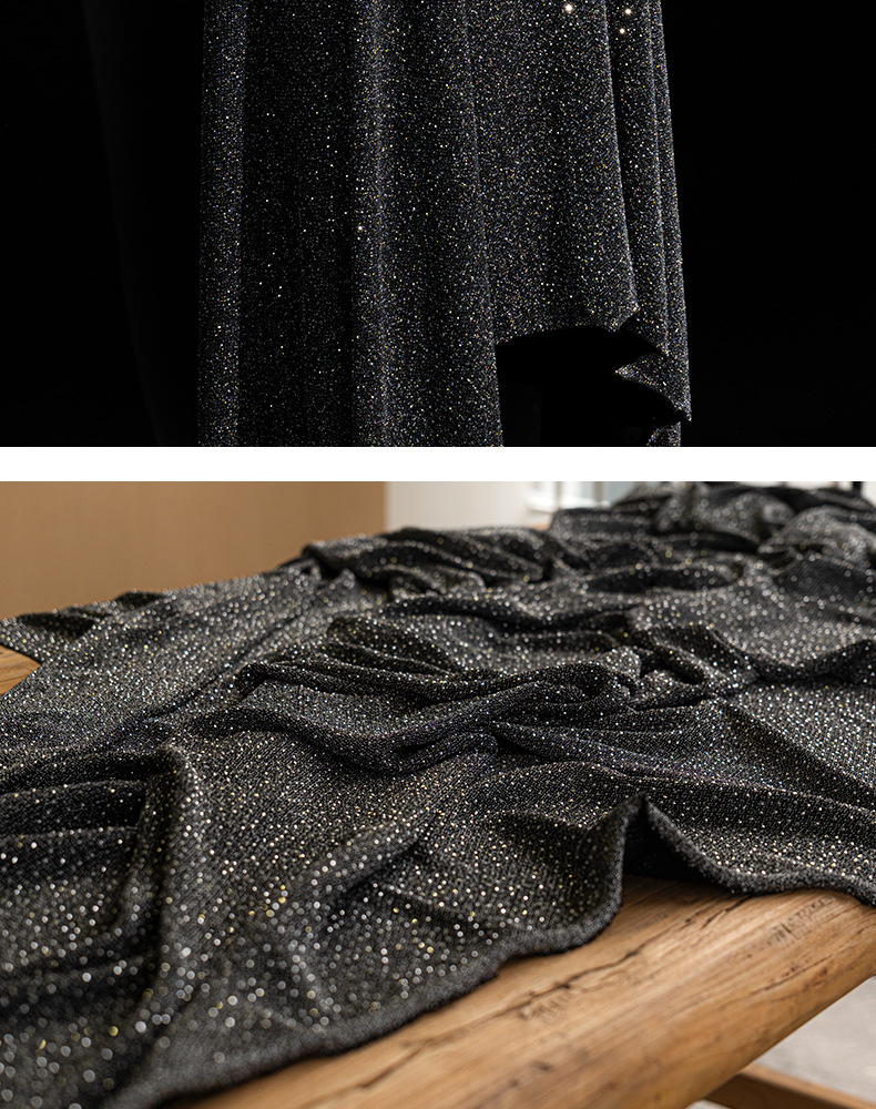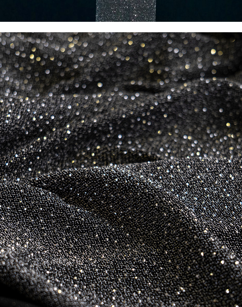 加厚弹力色丁布料 闪亮撒粉烫钻工艺面料 弹力晚会礼服演出服面料