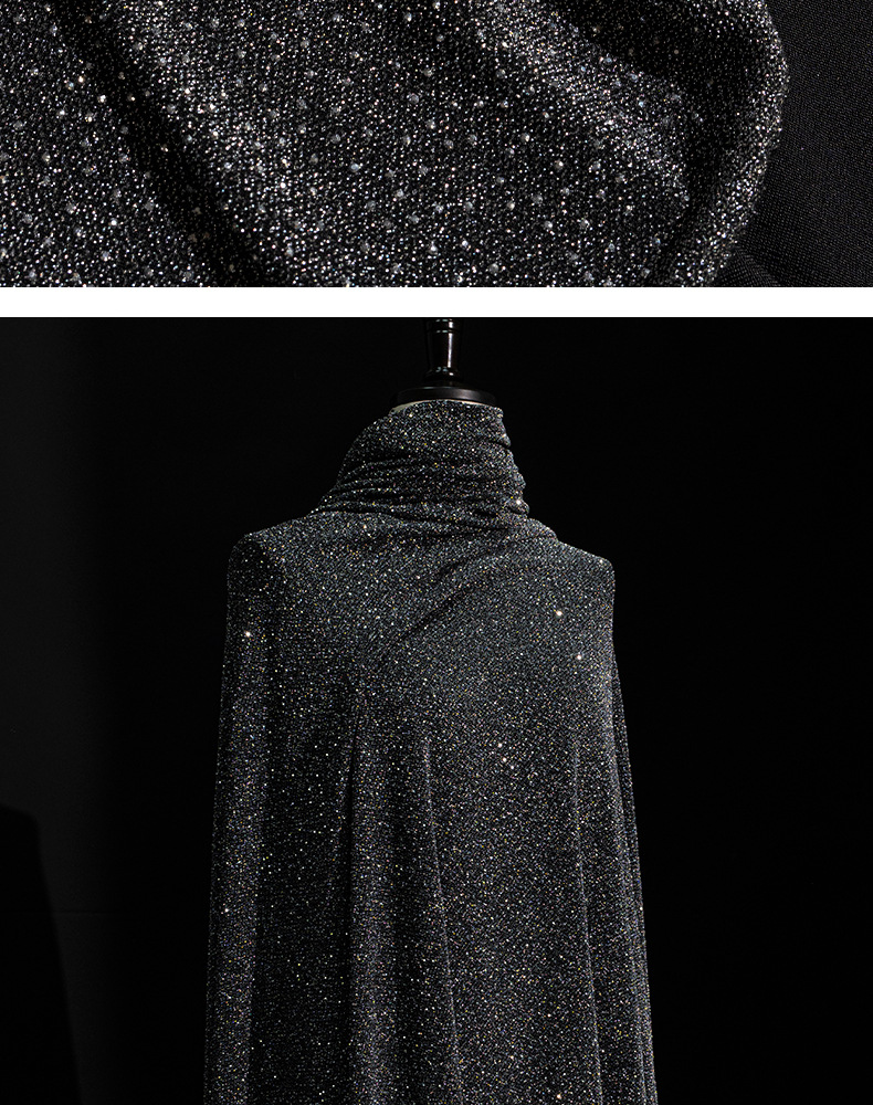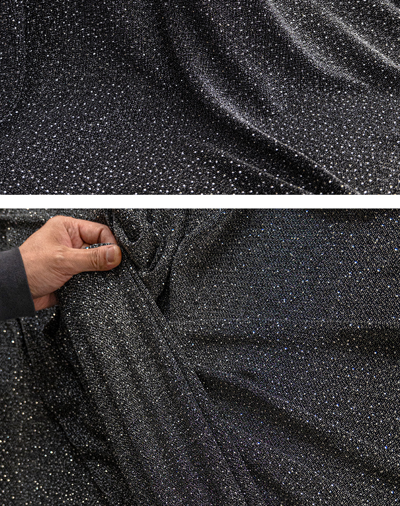 弾力性のある金銀の糸はダイヤモンドの閃光のニットの生地にアイロンをかけます。