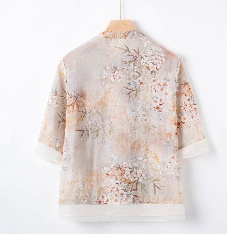 お母さんの夏の新しい中国式の上着の女性の中高年の婦人服の2024春のタイプの国風のシャツのおばあさんのシフォンの小さいシャツの夏