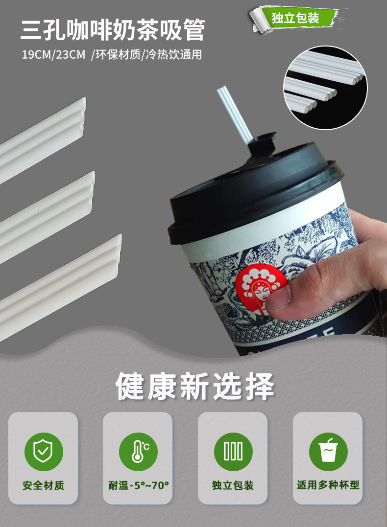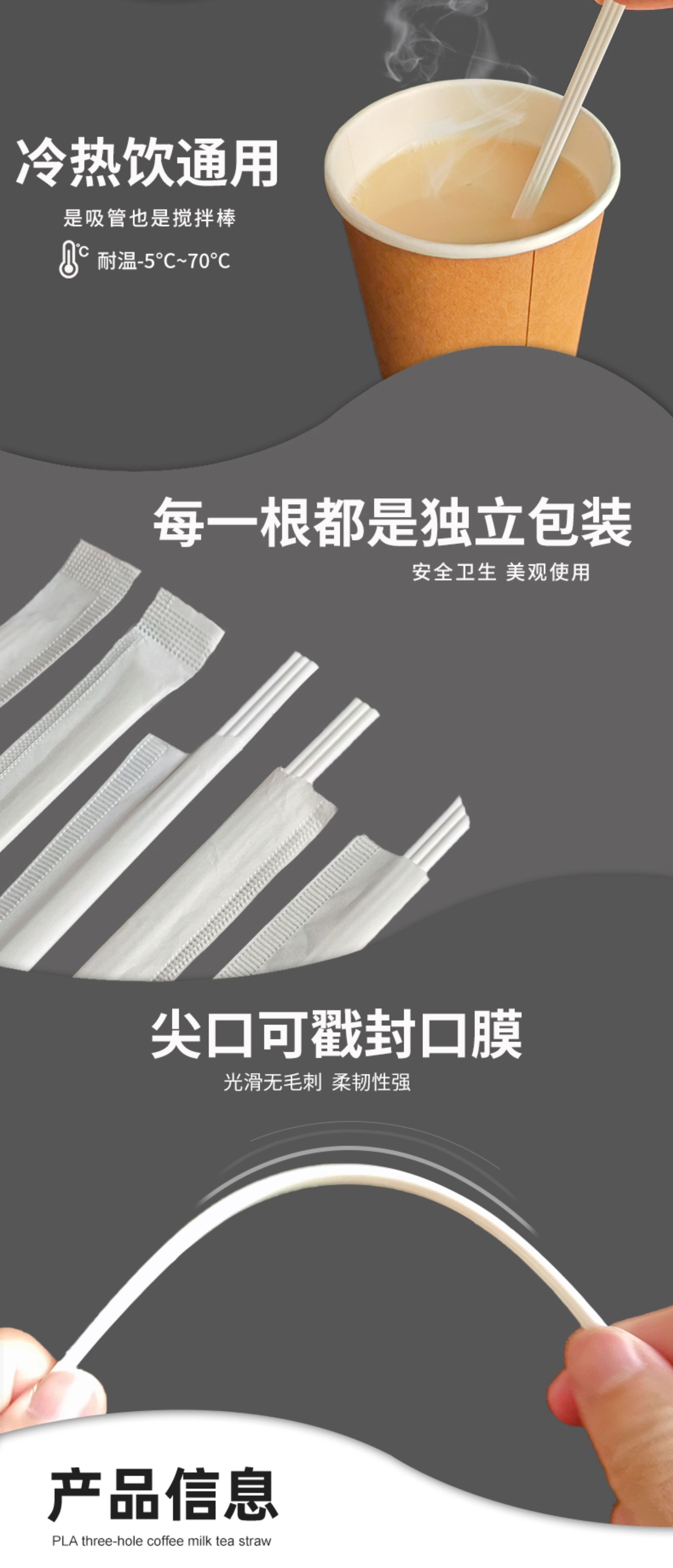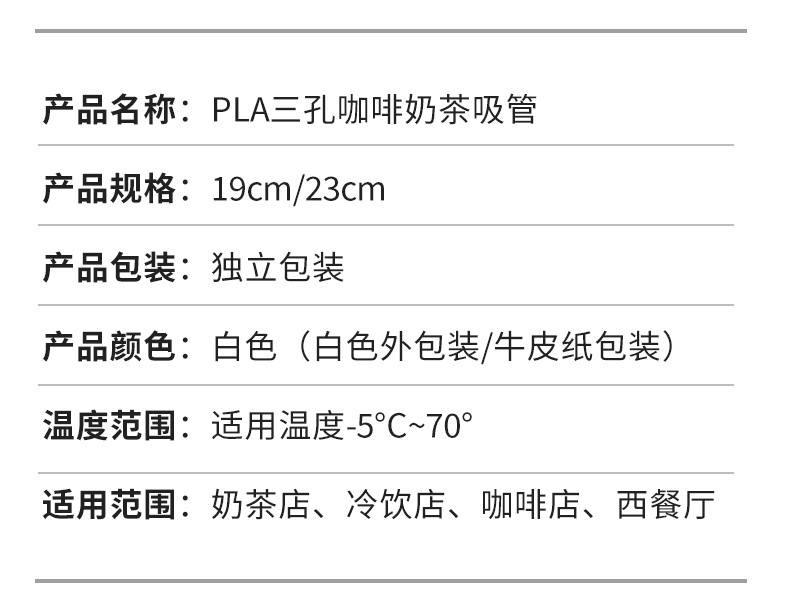 一次性三孔吸管独立包装可降解PLA热饮三品管 奶茶咖啡搅拌三品管