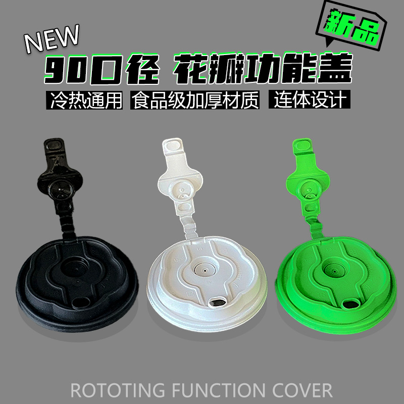 ブラック特許花弁ワンピースカバー使い捨てミルクティーカップカバー黒90口径冷水カップ射出カバー