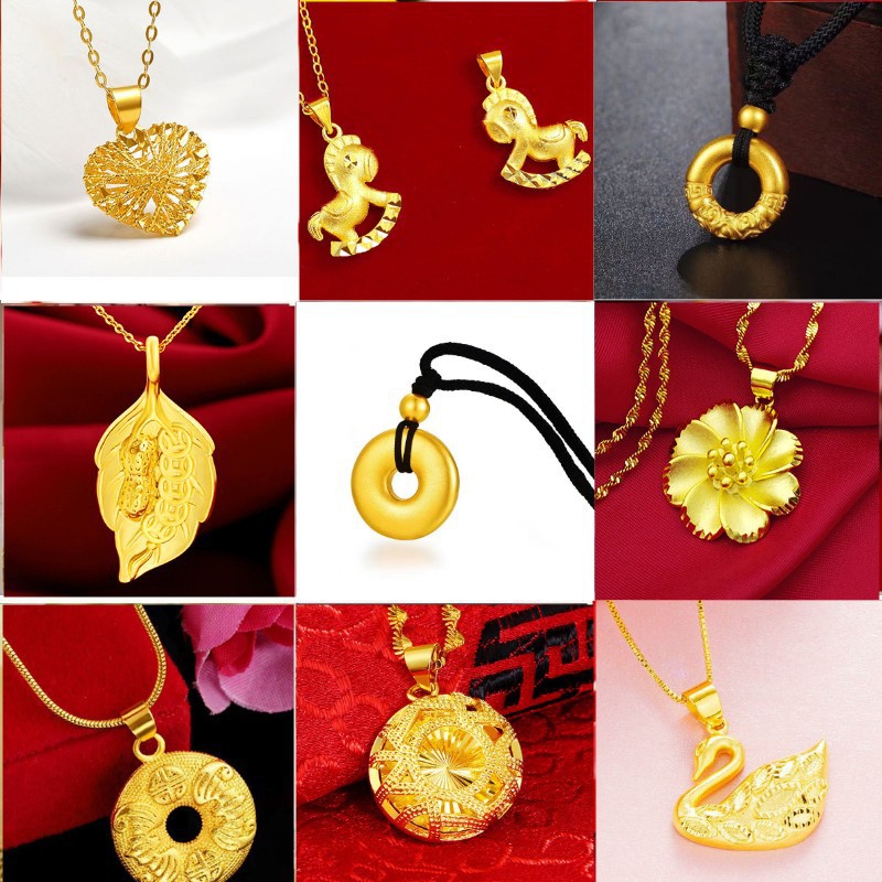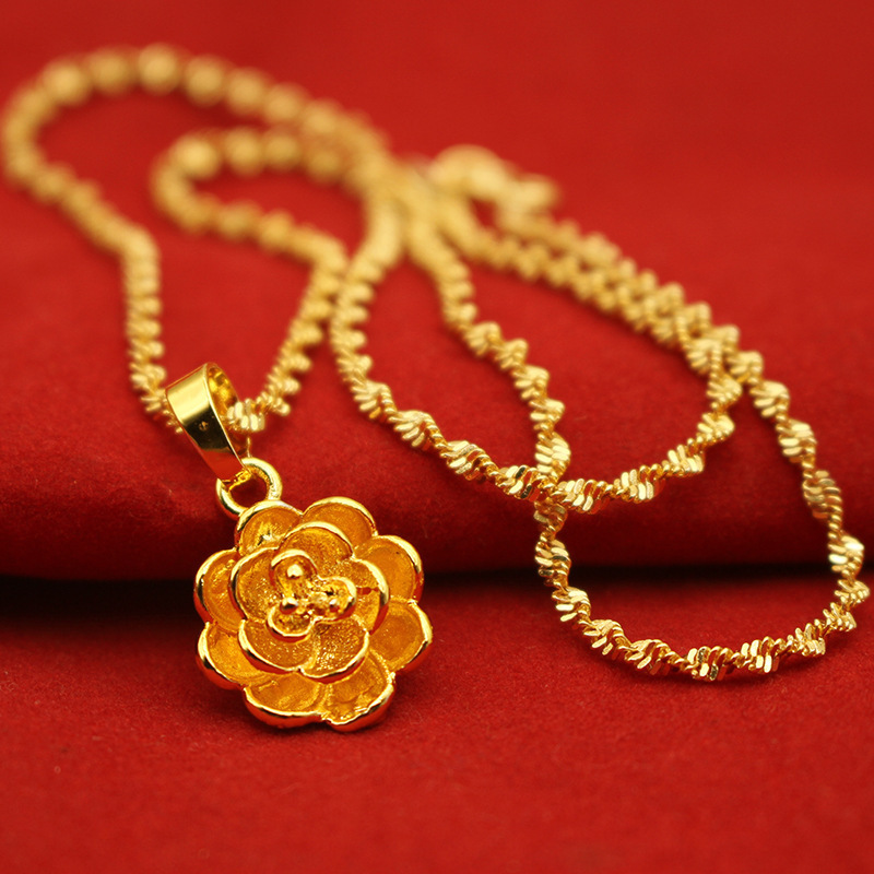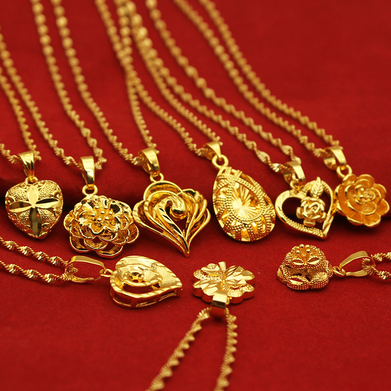 ベトナムの沙金のペンダントの女性は黄金の24kをまねて金色の鎖骨の愛のネックレスの夜市の露店のdiyのアクセサリの卸売りをめっきします。