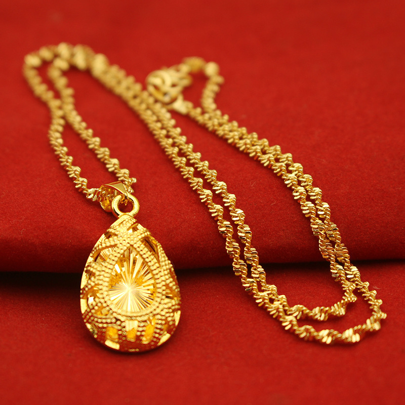 越南沙金女士水滴爱心水波纹项链水滴女士项链批发