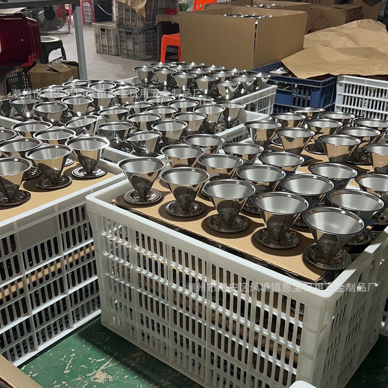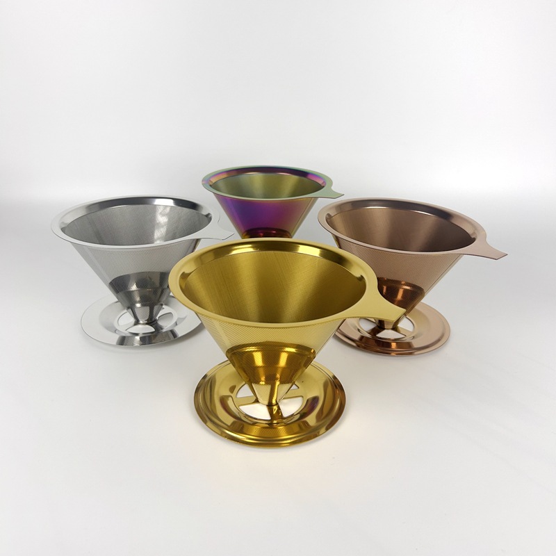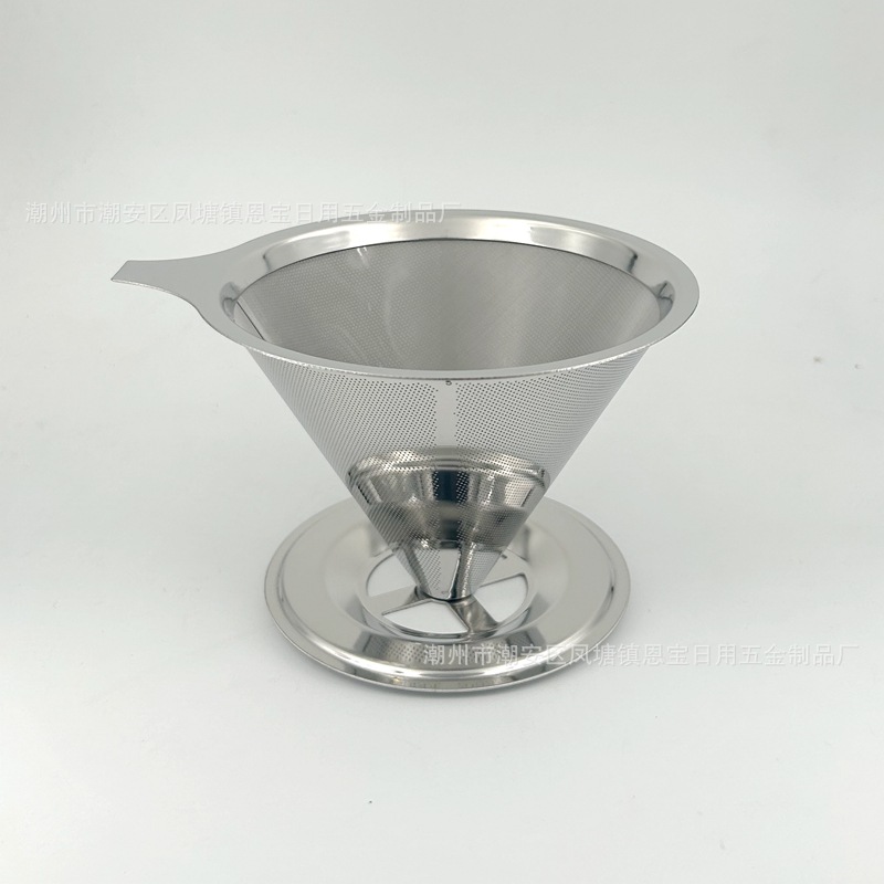 源工場コーヒーフィルター304ステンレス二重手コーヒー漏斗無濾紙クロスボーダー専用