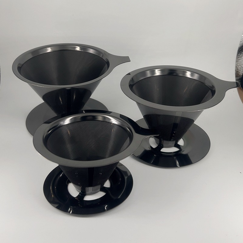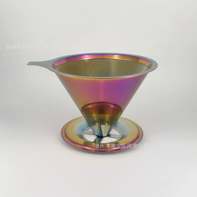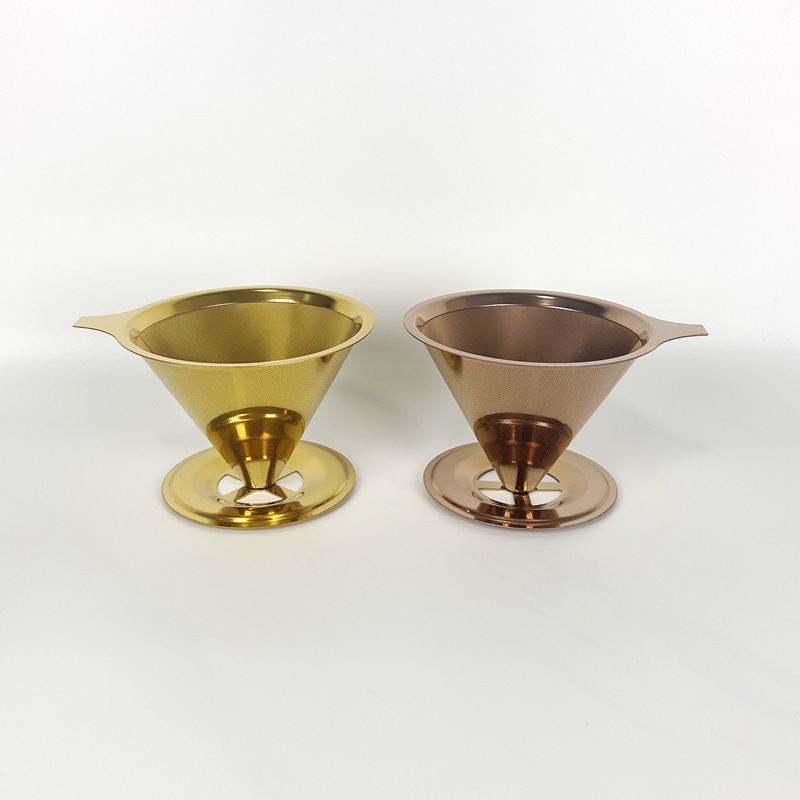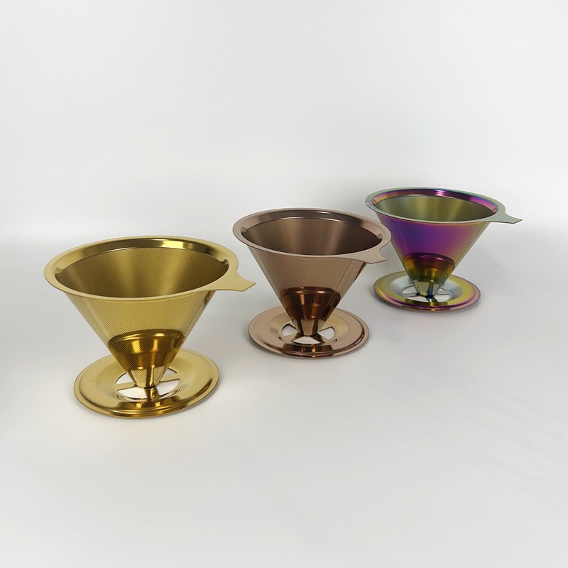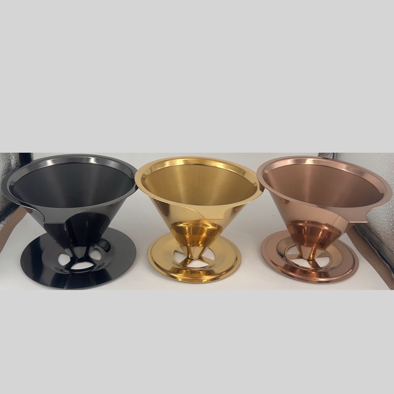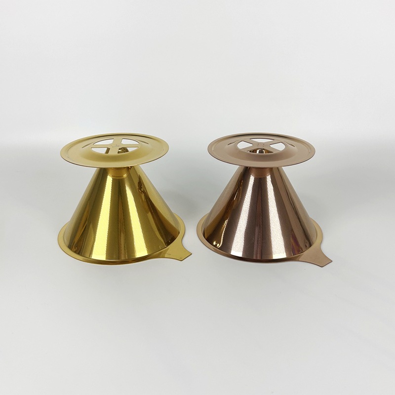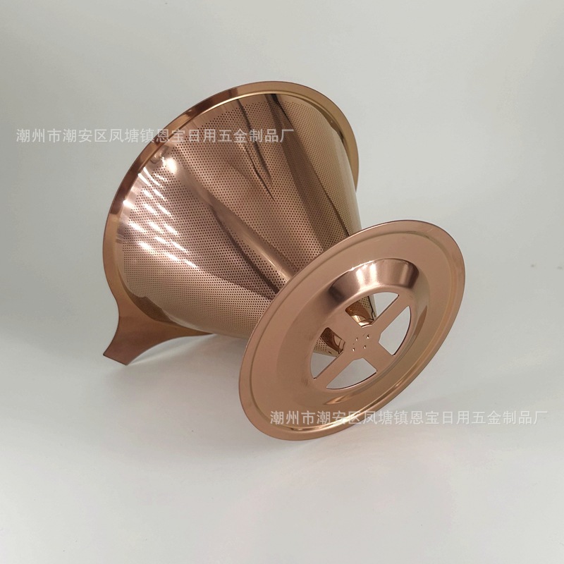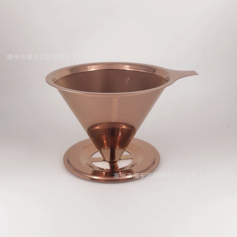 国境を越えたステンレス製手沖コーヒー漏斗チタンメッキ黒色薔薇金色二重コーヒーストレーナー