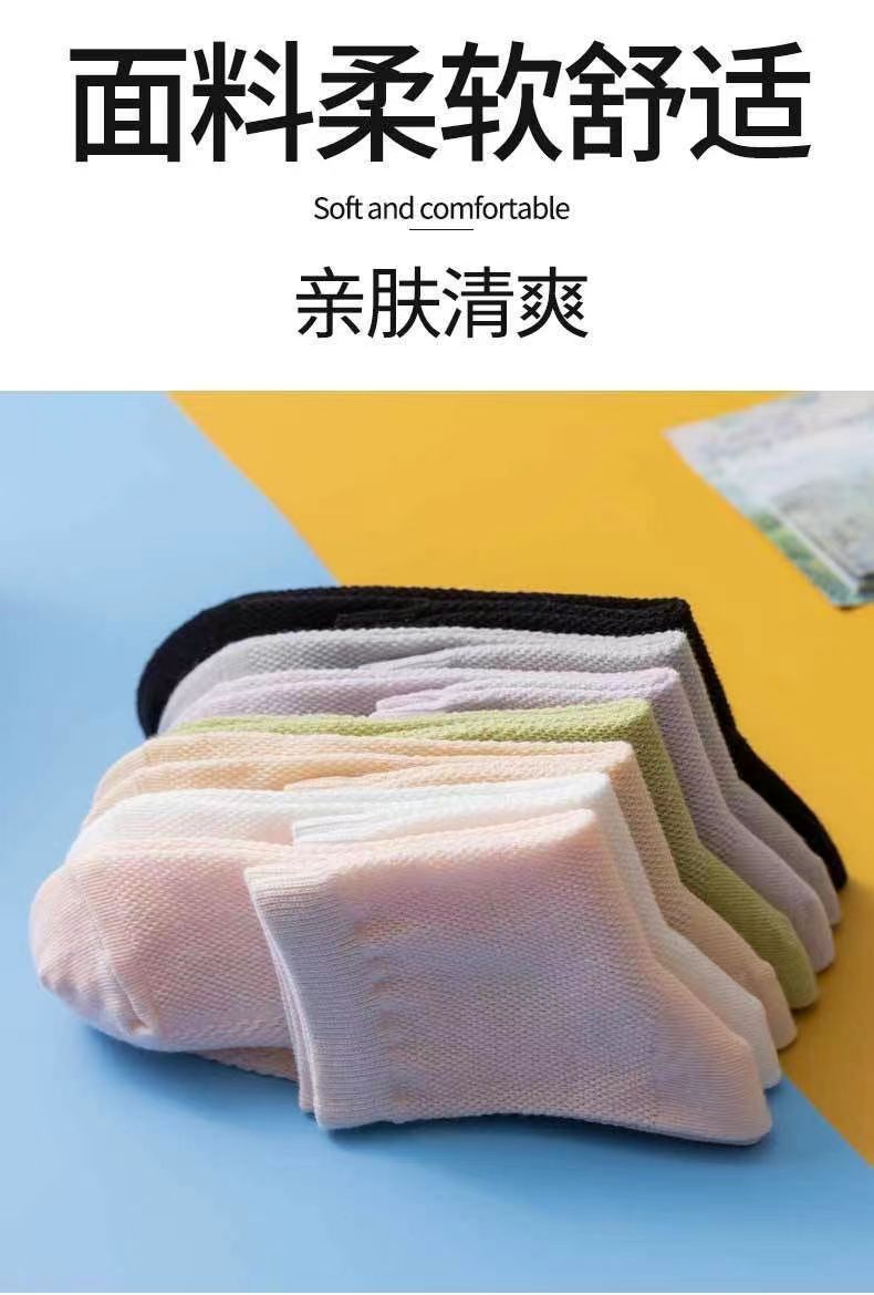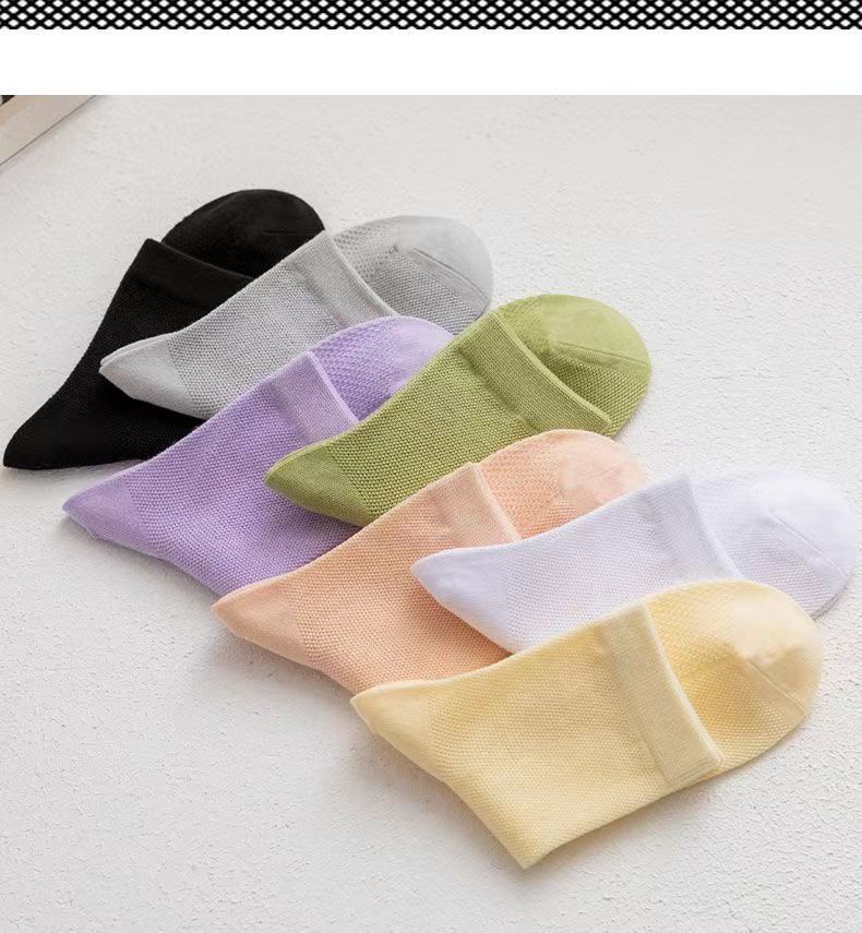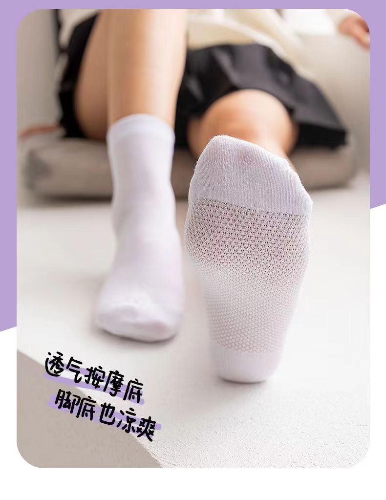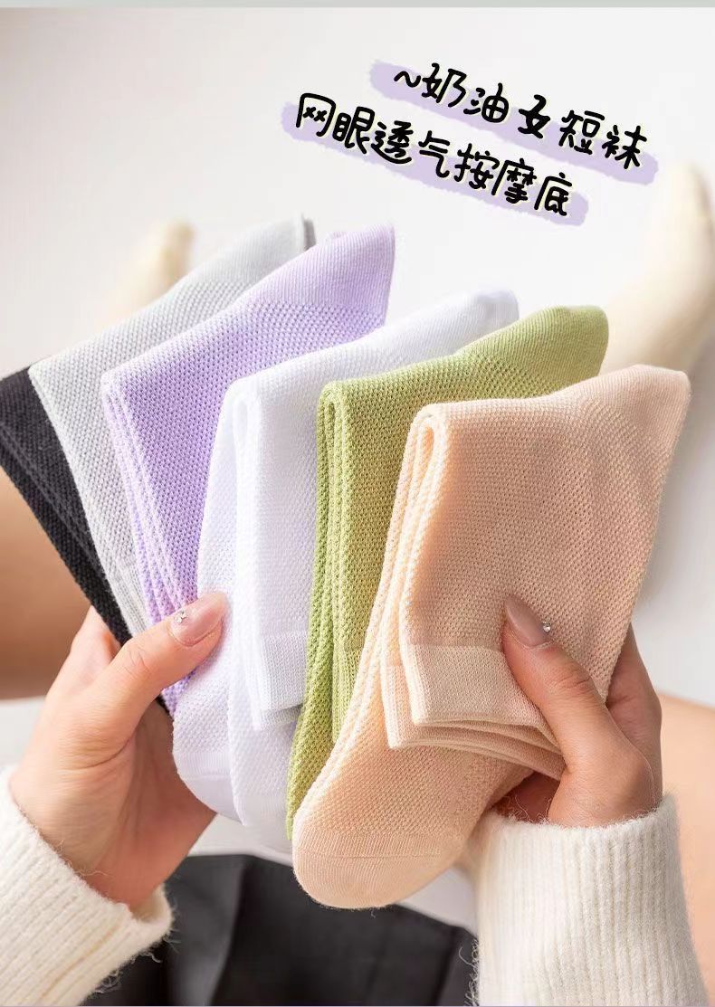 2024新作ファッションソックス純色ミドルソックス夏薄手通気防臭メッシュマッサージ底中筒純色レディースソックス