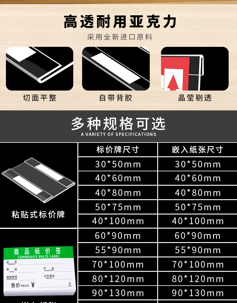 商品価格札アクリル価格札プラスチック透明台カードデスクトップ展示札カスタム卸売り