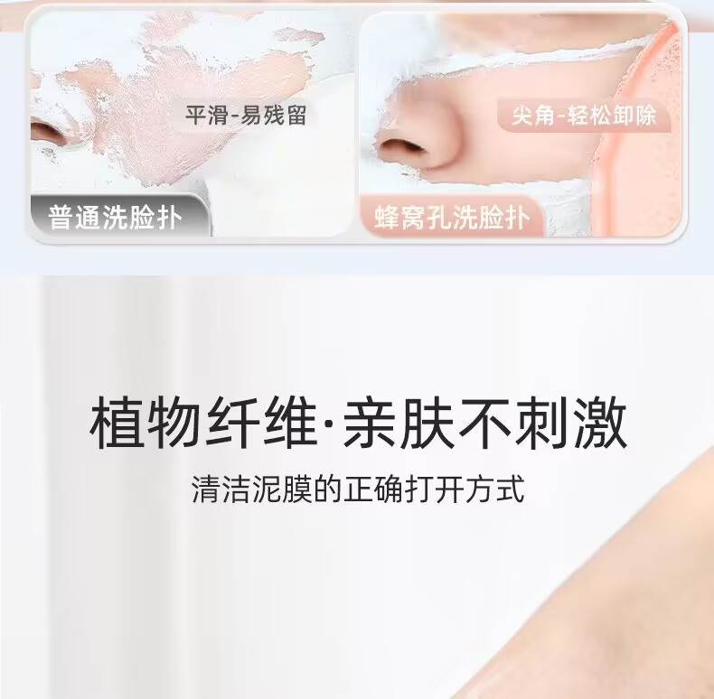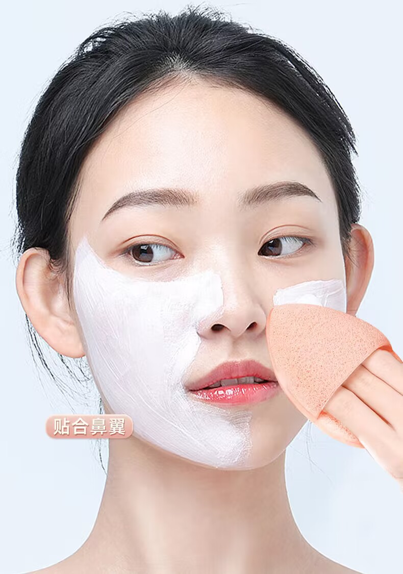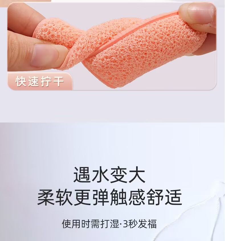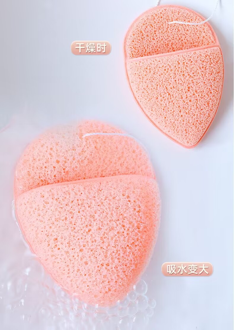 洗顔手のカバー式の厚いスポンジはとても柔らかくて、顔を拭います。