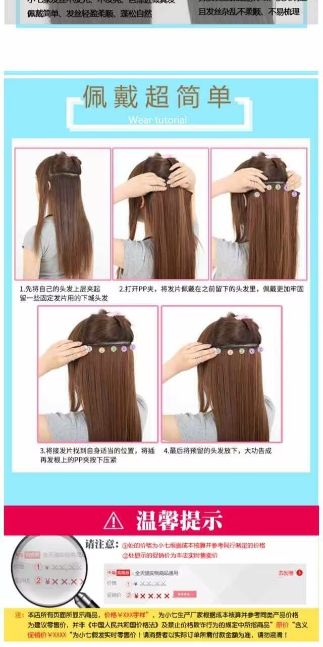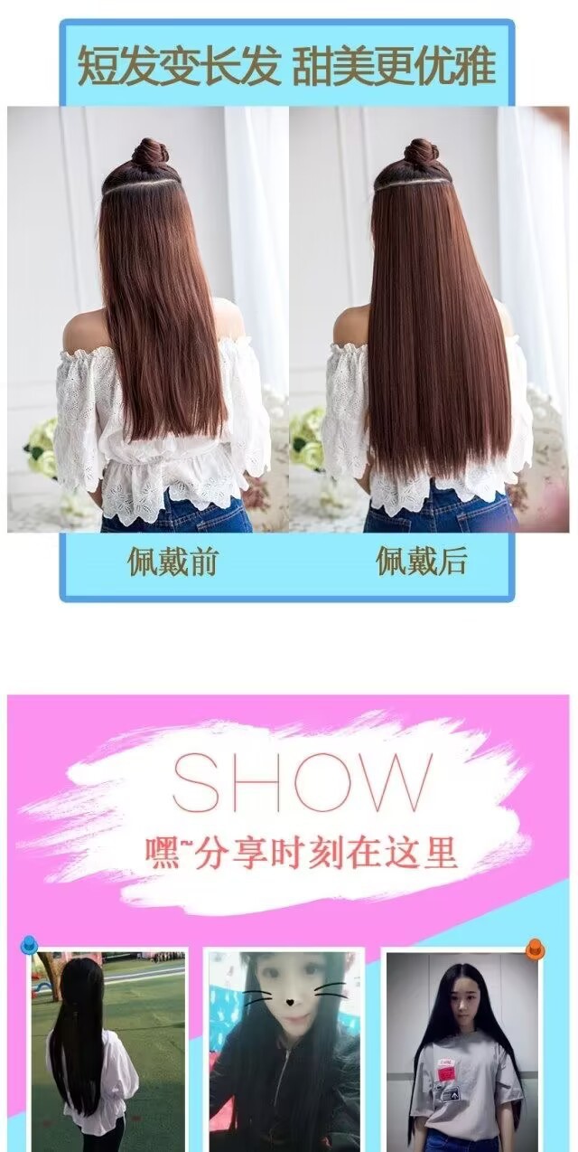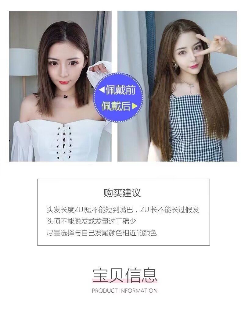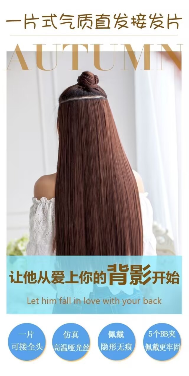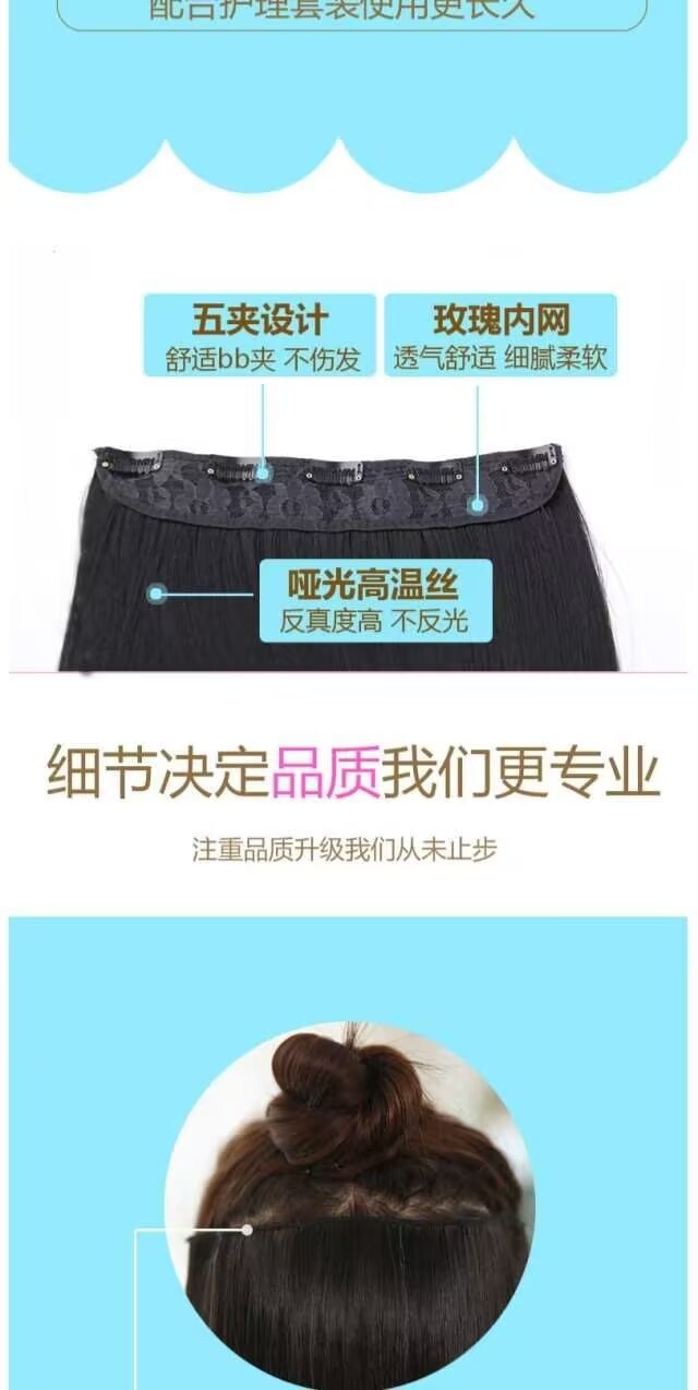 女性用ウィッグ、ヘアピース、五枚式インビジブルロングストレートヘアピース、ワンピース式人工ストレートヘアピース、女性用増毛