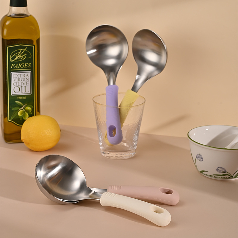 メーカー韓国食品グレード 304 ステンレス鋼ショートハンドルスープスプーン家庭用大型スープスプーンシリコンハンドルお粥スプーン