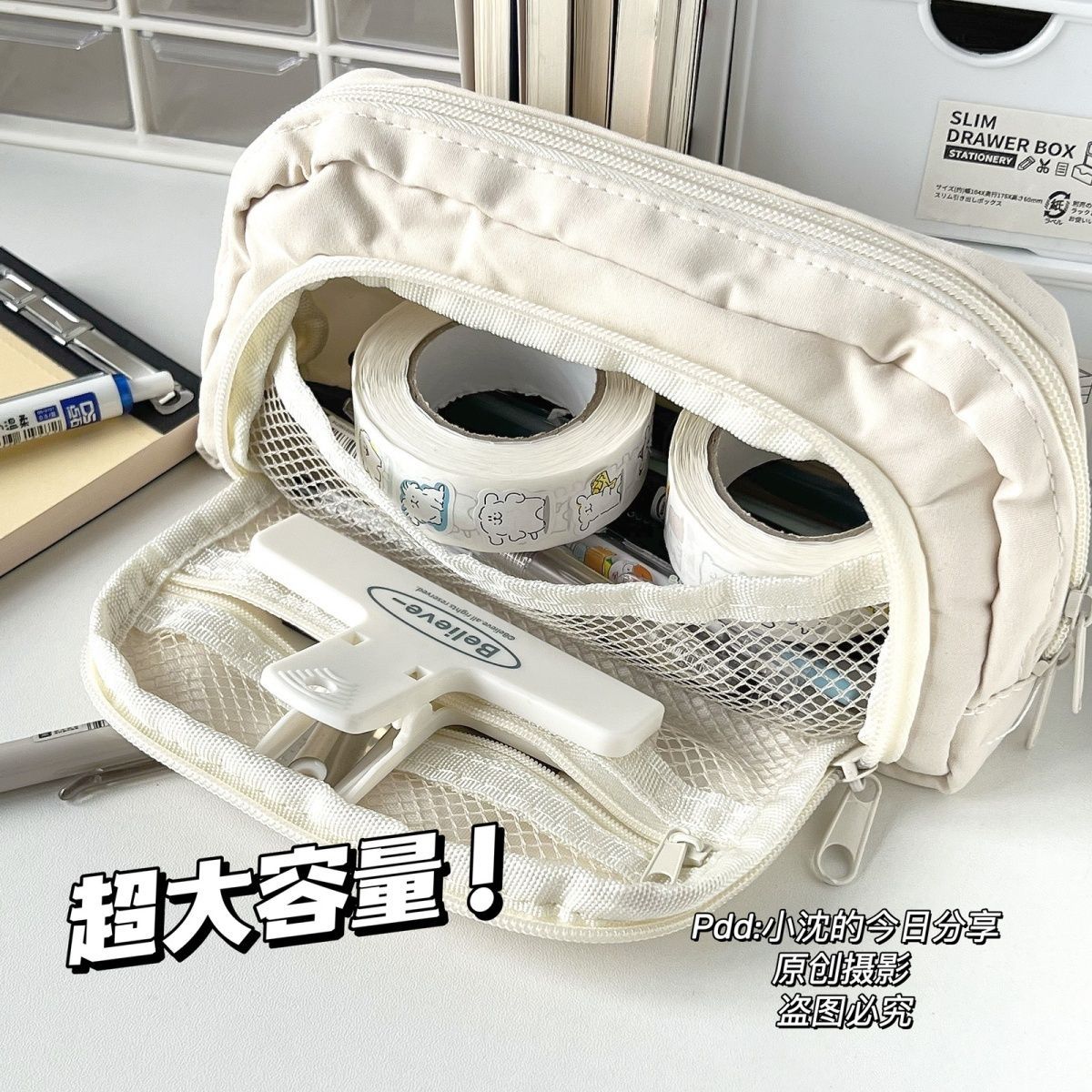パチャひっくり返し米白铅笔ins高颜値ペン袋初高学生大容量多层文房具収纳