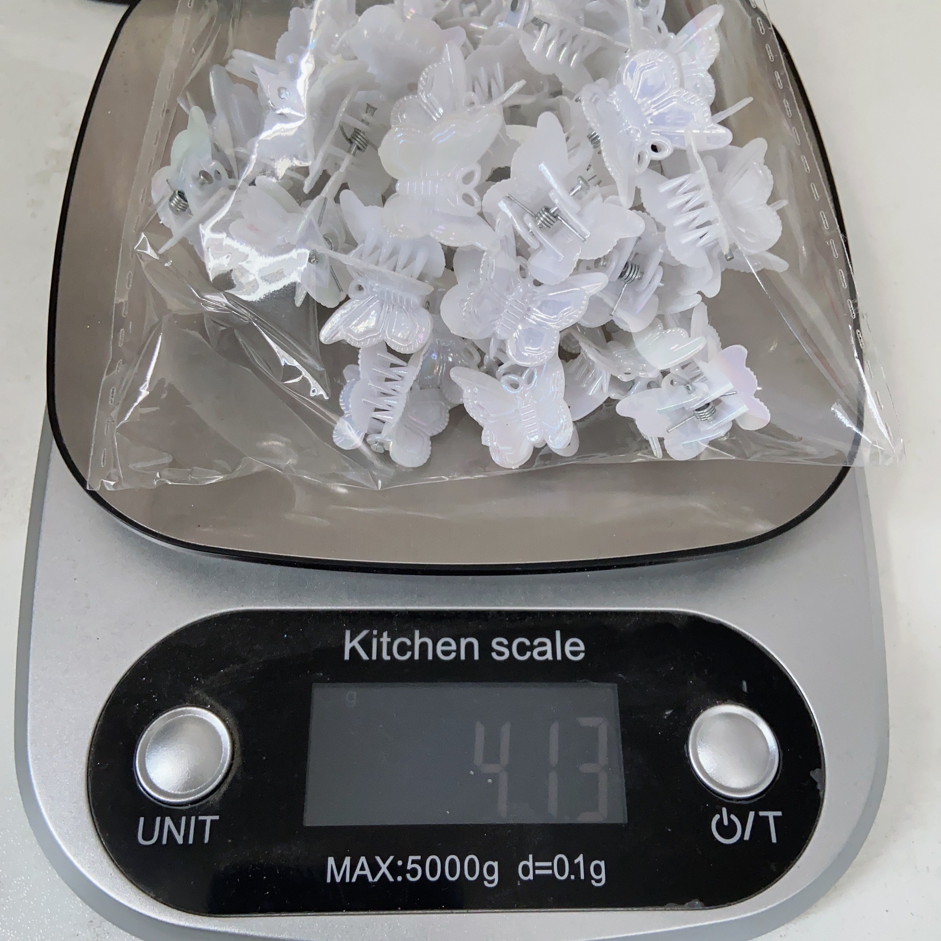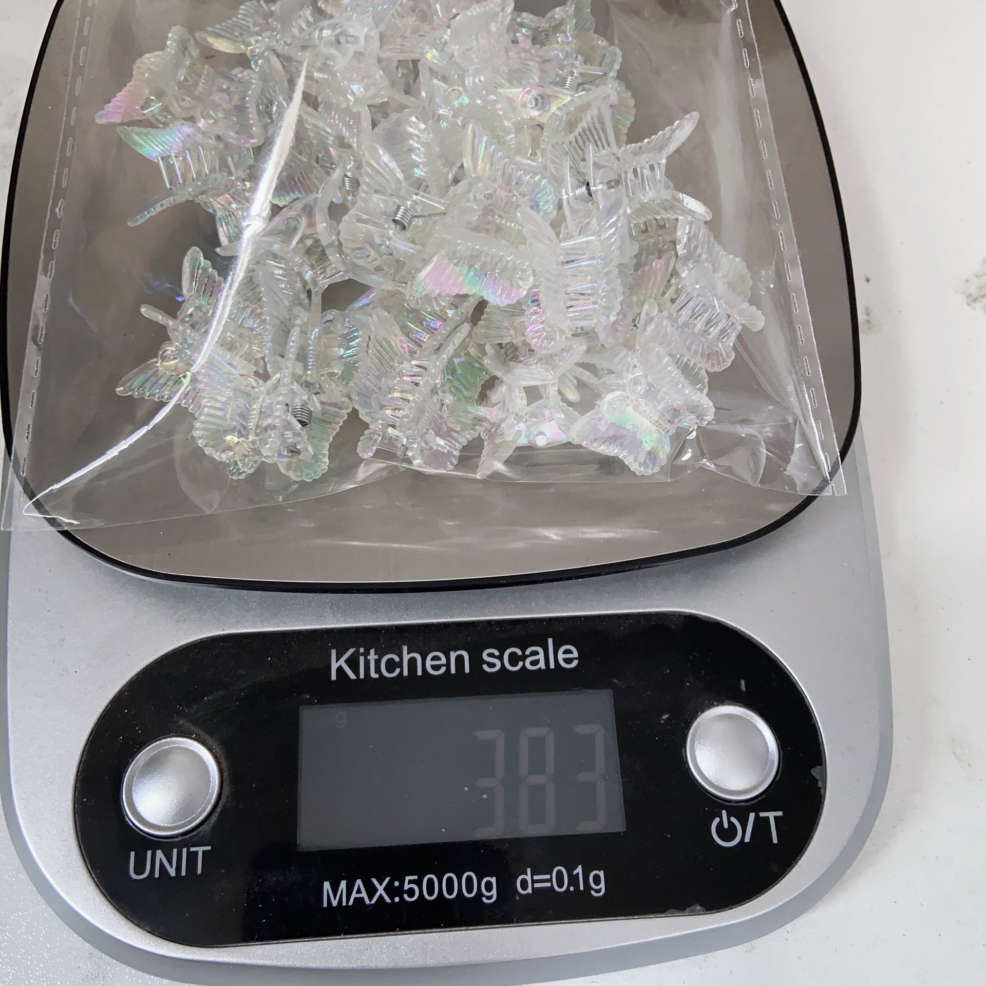 透明小抓夹 36颗的重量是38.3g,AB白蝴蝶46颗的重量是41.3g