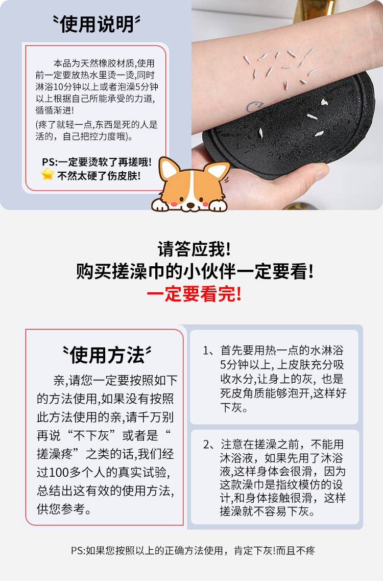 CA黑色搓澡皮子圆饼搓澡巾洗澡神器家用女士专用搓泥无痛网红同款