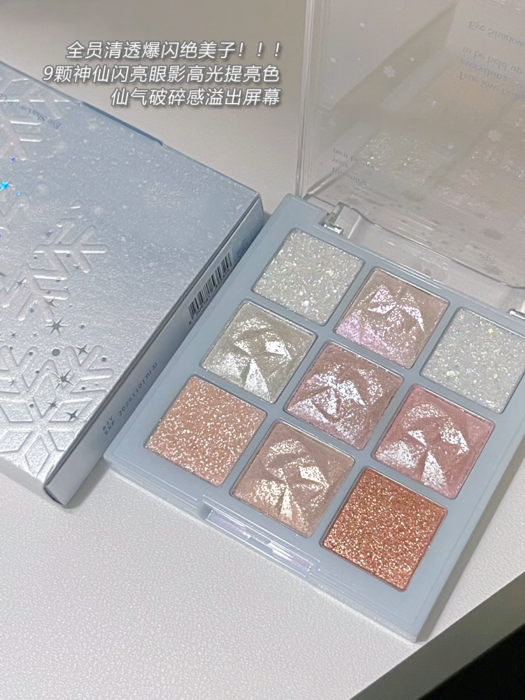 K'apeineクリスマス雪花九色アイシャドー盤粉質繊細服帖爆閃変色龍化粧アイシャドー