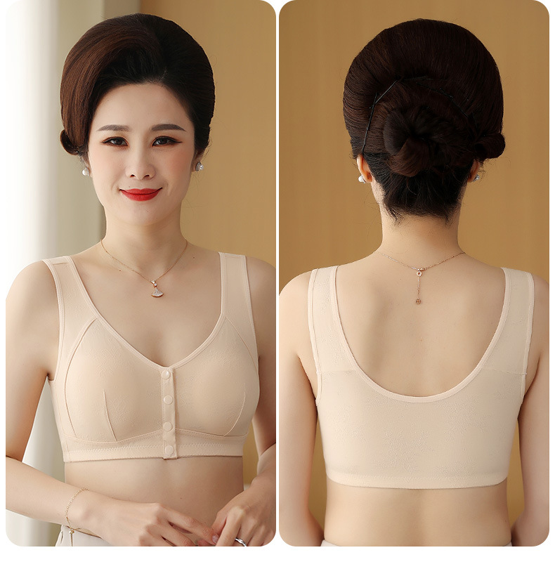 2024新型の中高年のブラジャーのお母さんの下着の純綿のスチールリングの前でボタンを開けて心を込めます。