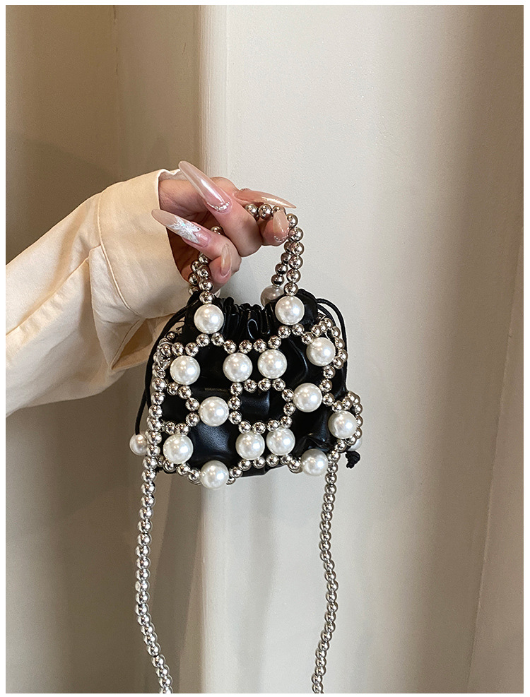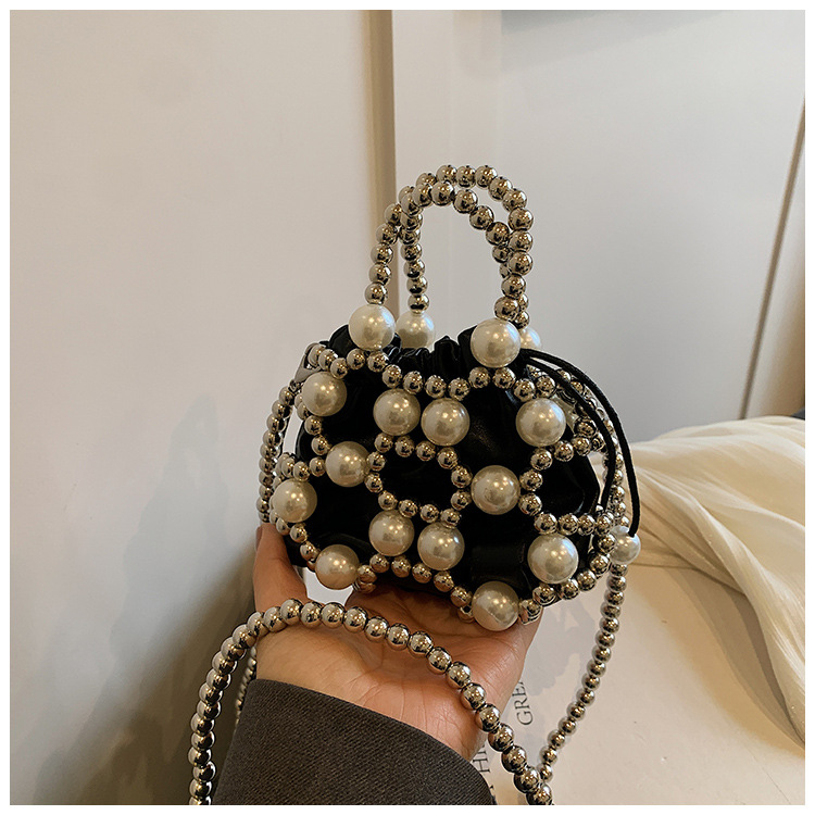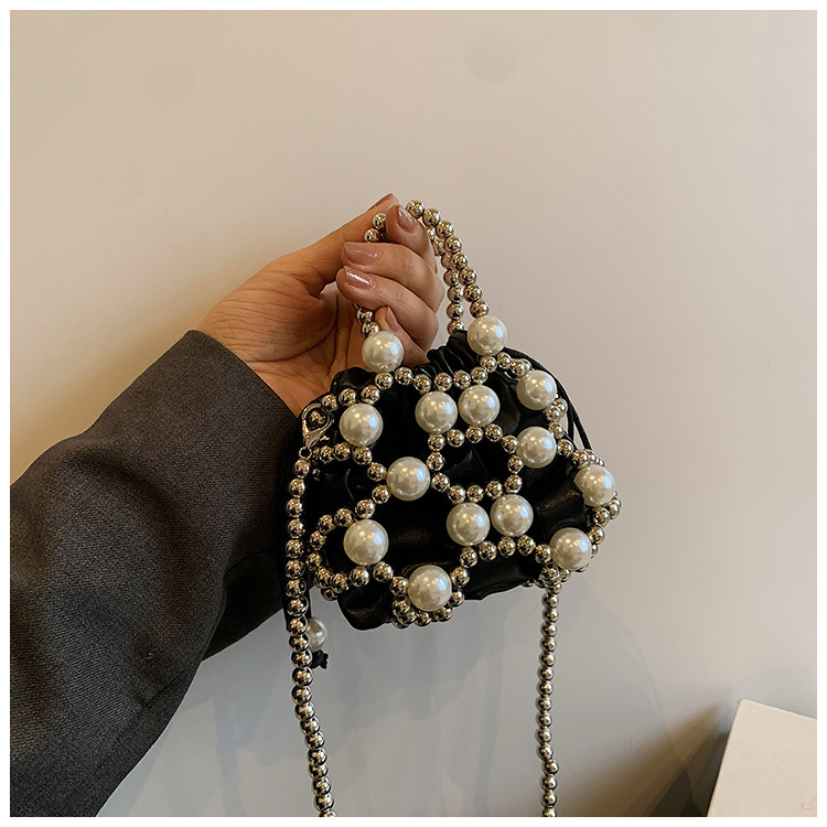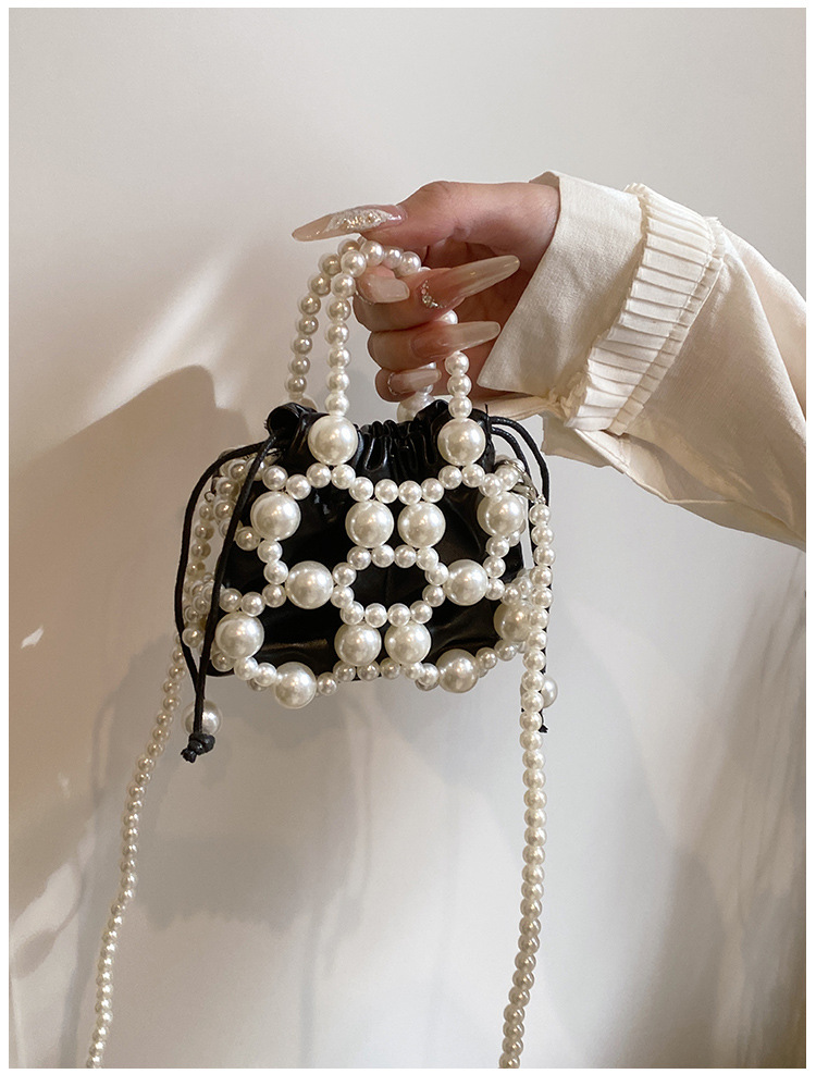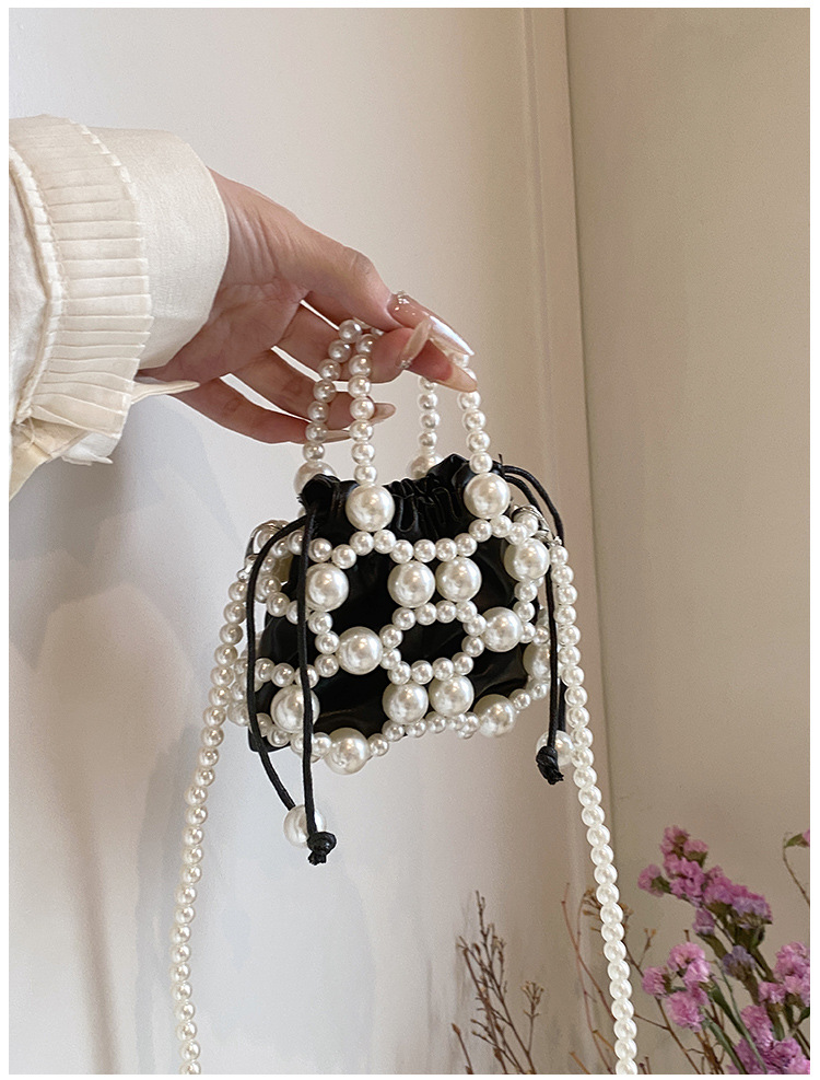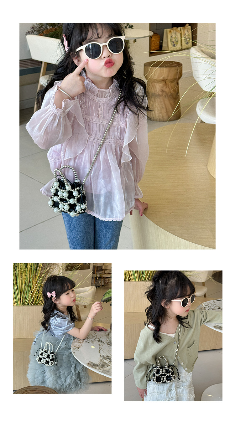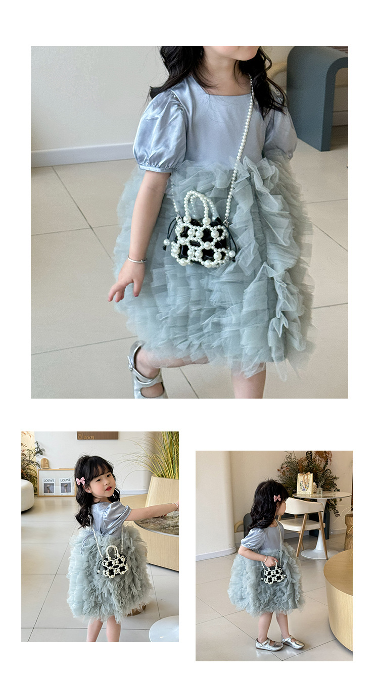 真珠の透かし彫りの洋気の子供の小さい包みのかわいい女の子のハンドバッグの2024夏の新型のビーズのファッションの斜めのショルダーバッグ