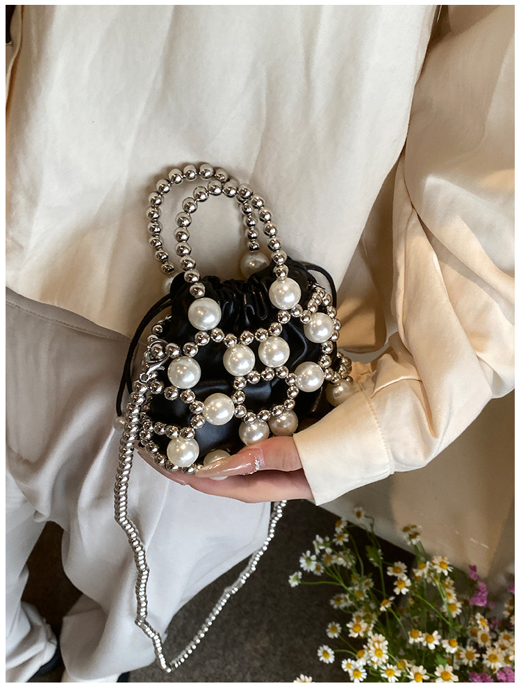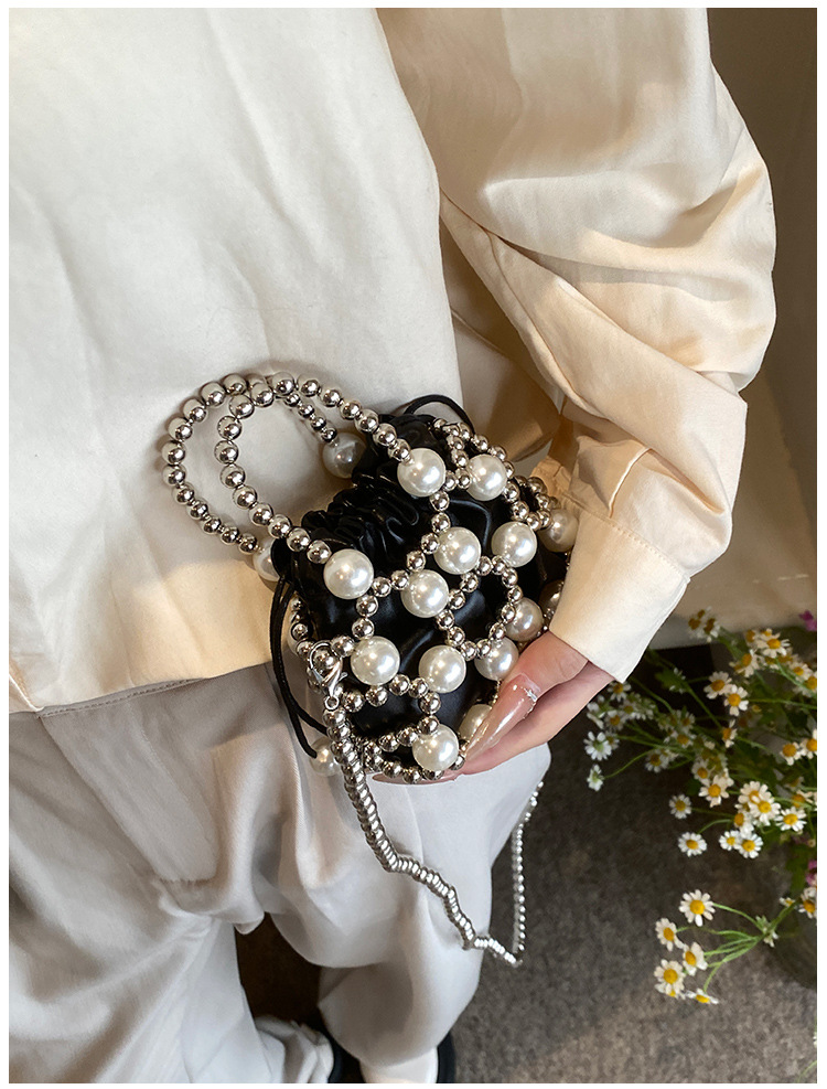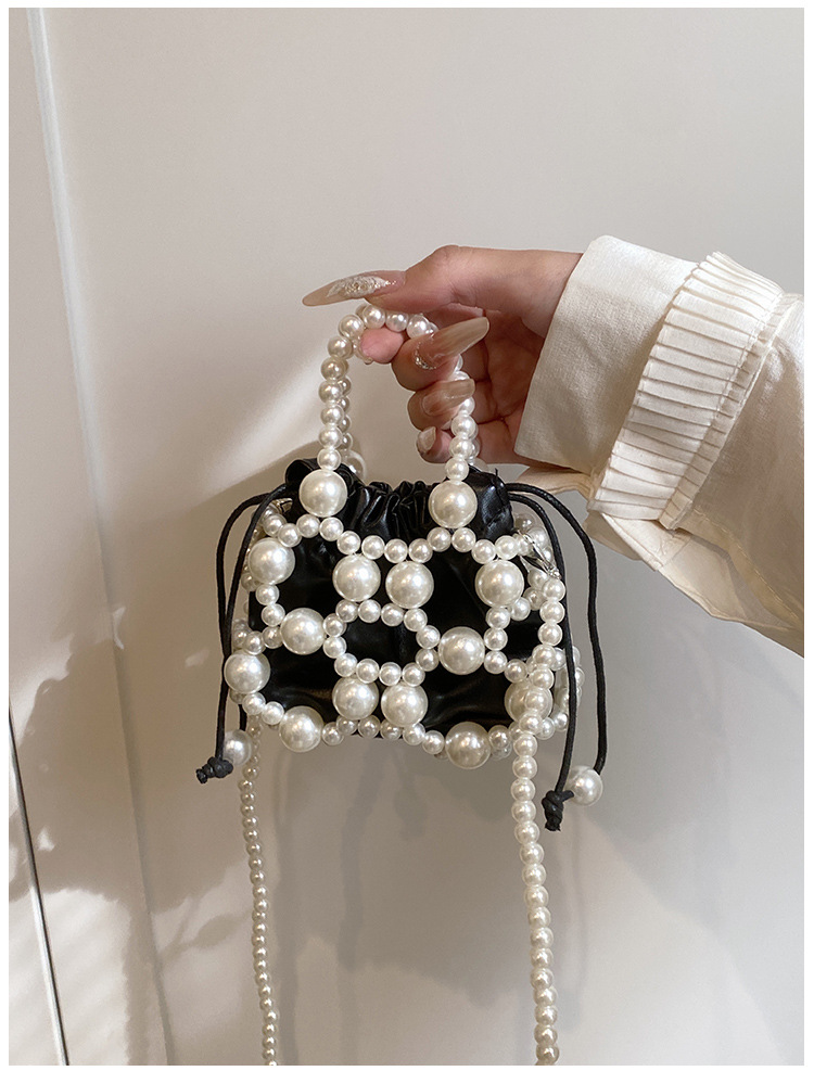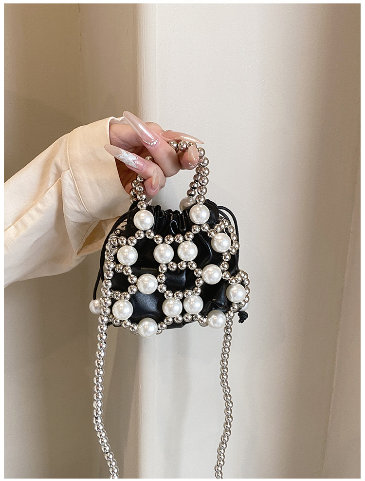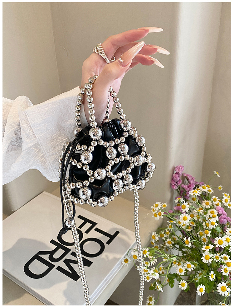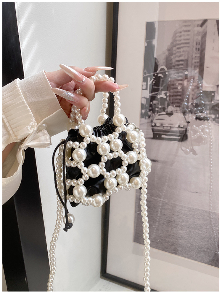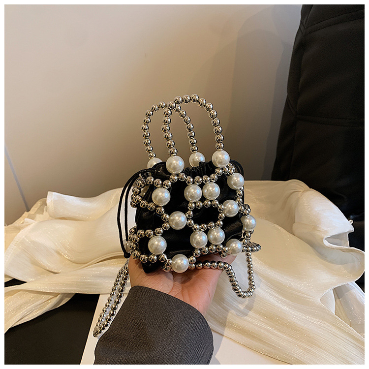 真珠の透かし彫りの洋気の子供の小さい包みのかわいい女の子のハンドバッグの2024夏の新型のビーズのファッションの斜めのショルダーバッグ