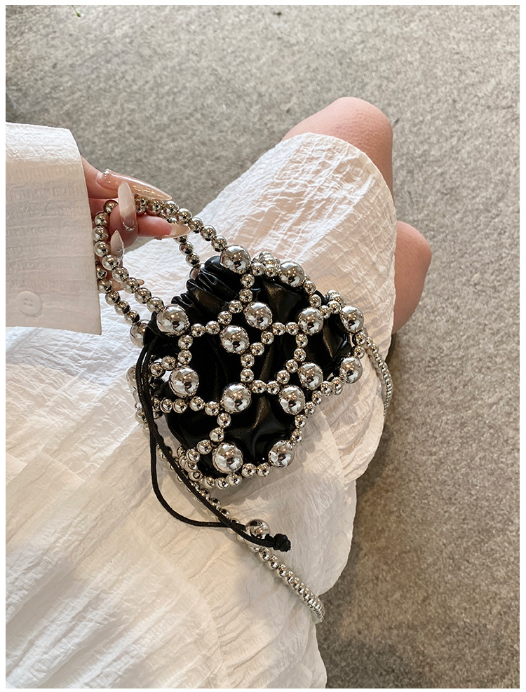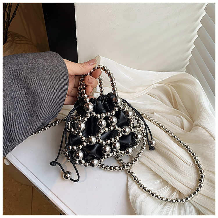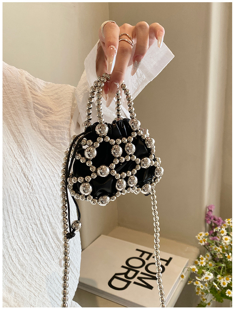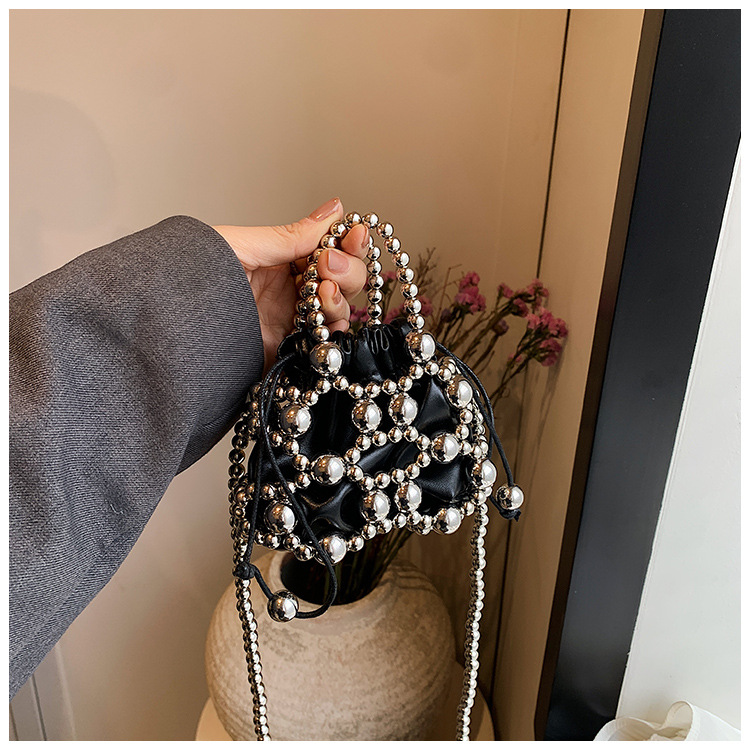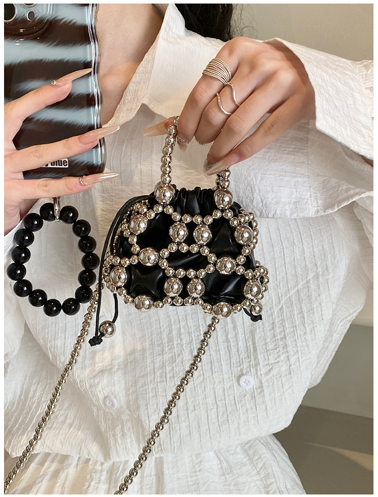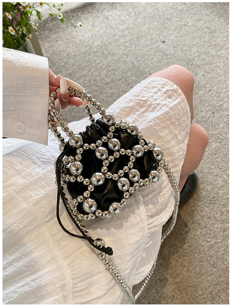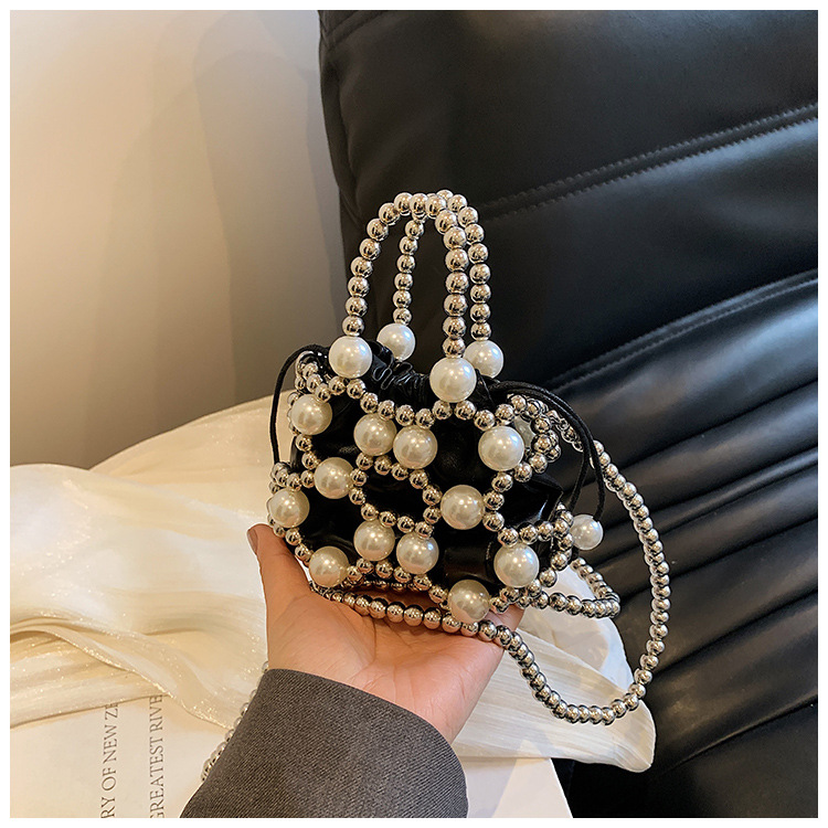真珠の透かし彫りの洋気の子供の小さい包みのかわいい女の子のハンドバッグの2024夏の新型のビーズのファッションの斜めのショルダーバッグ