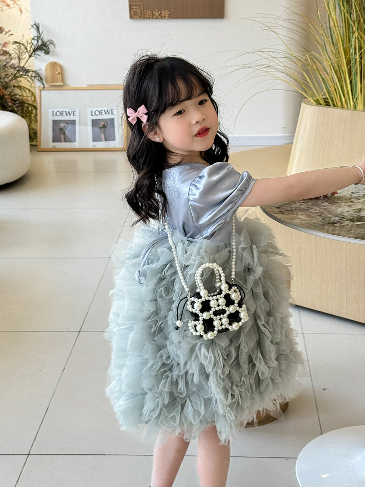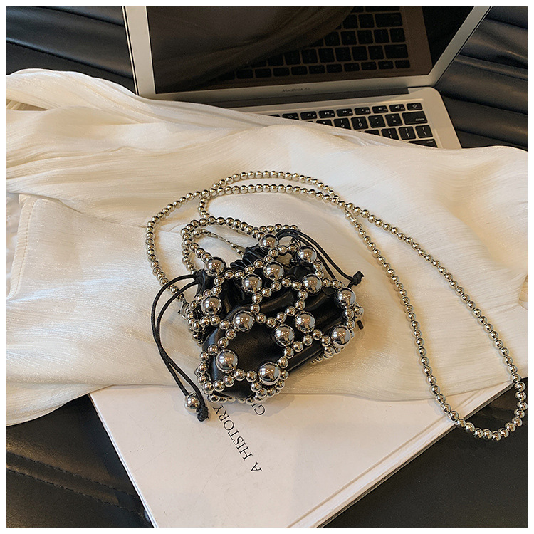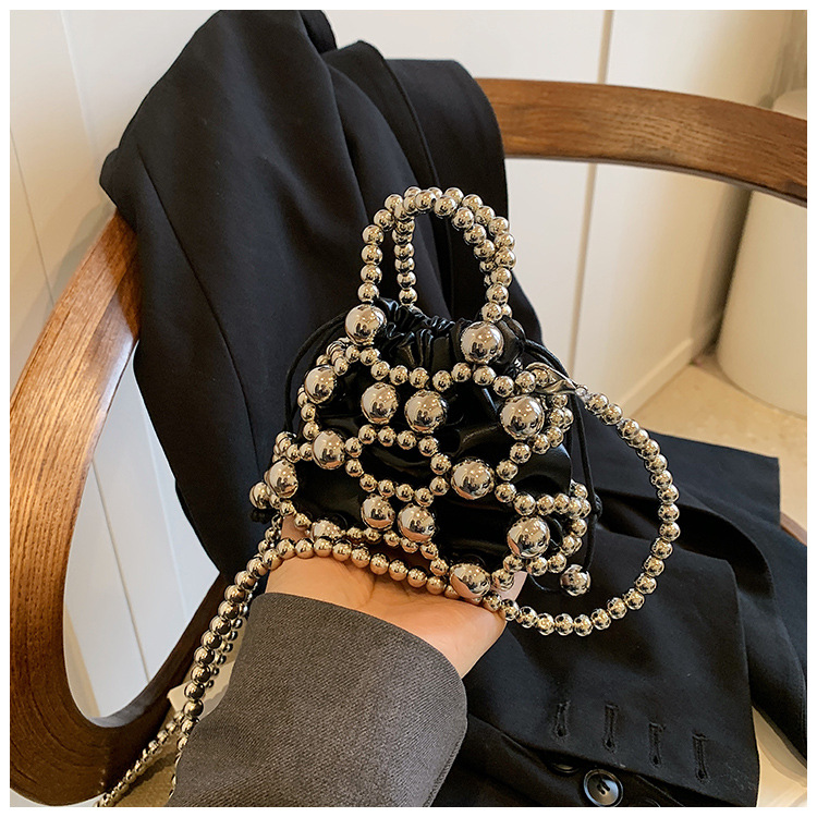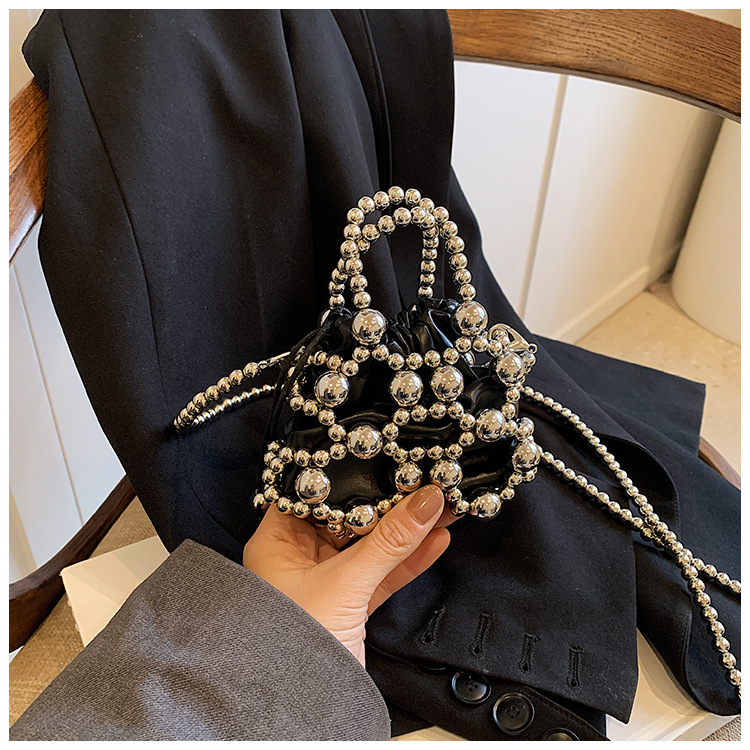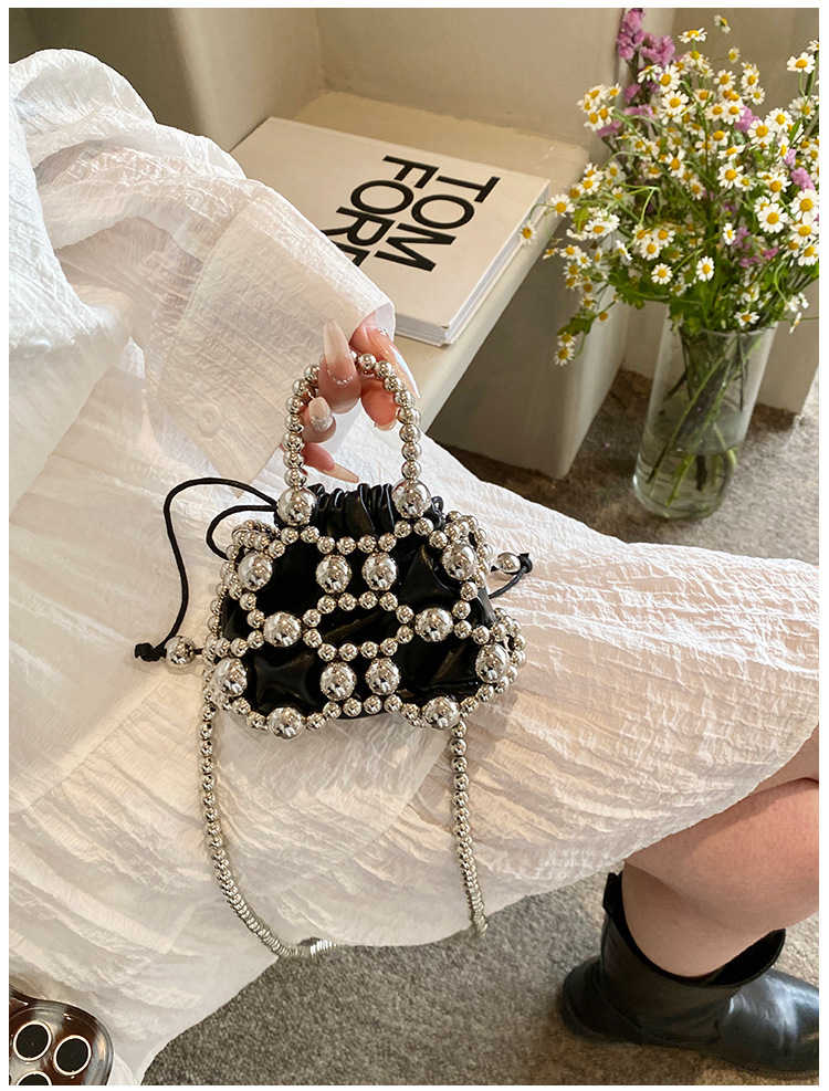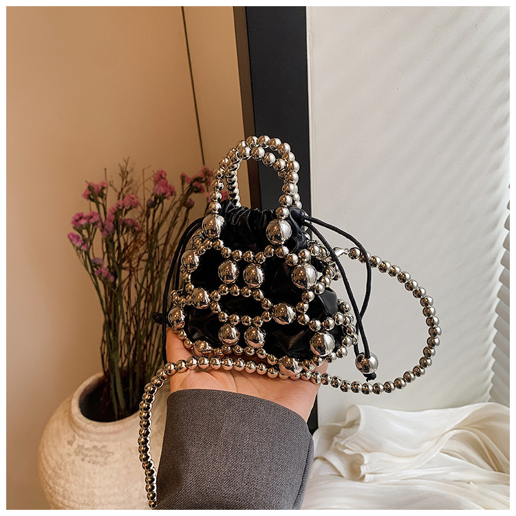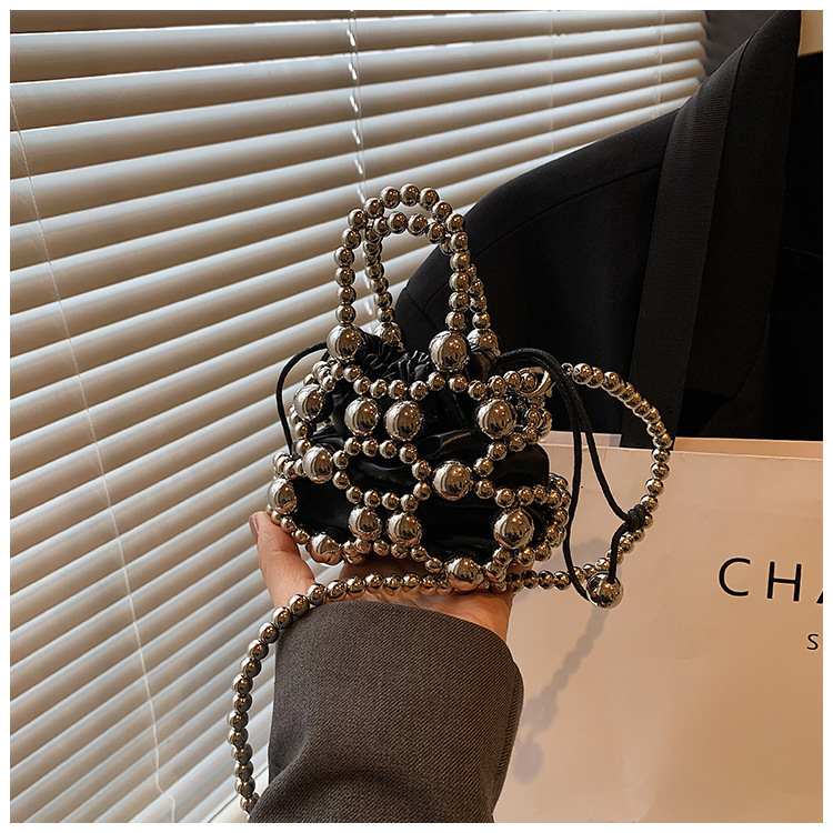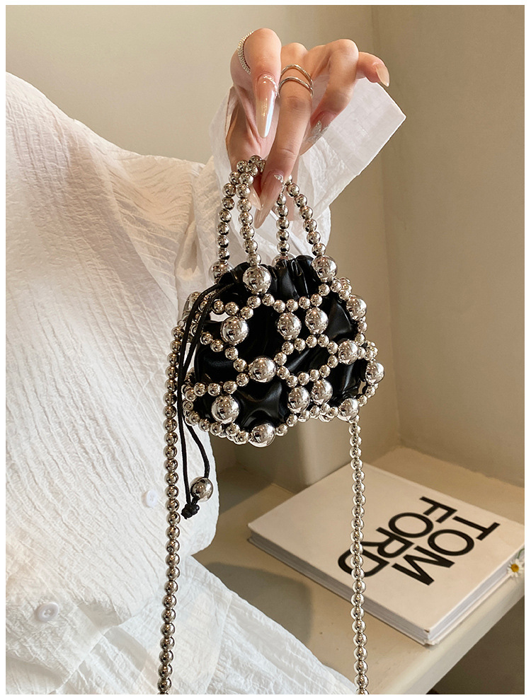 真珠の透かし彫りの洋気の子供の小さい包みのかわいい女の子のハンドバッグの2024夏の新型のビーズのファッションの斜めのショルダーバッグ