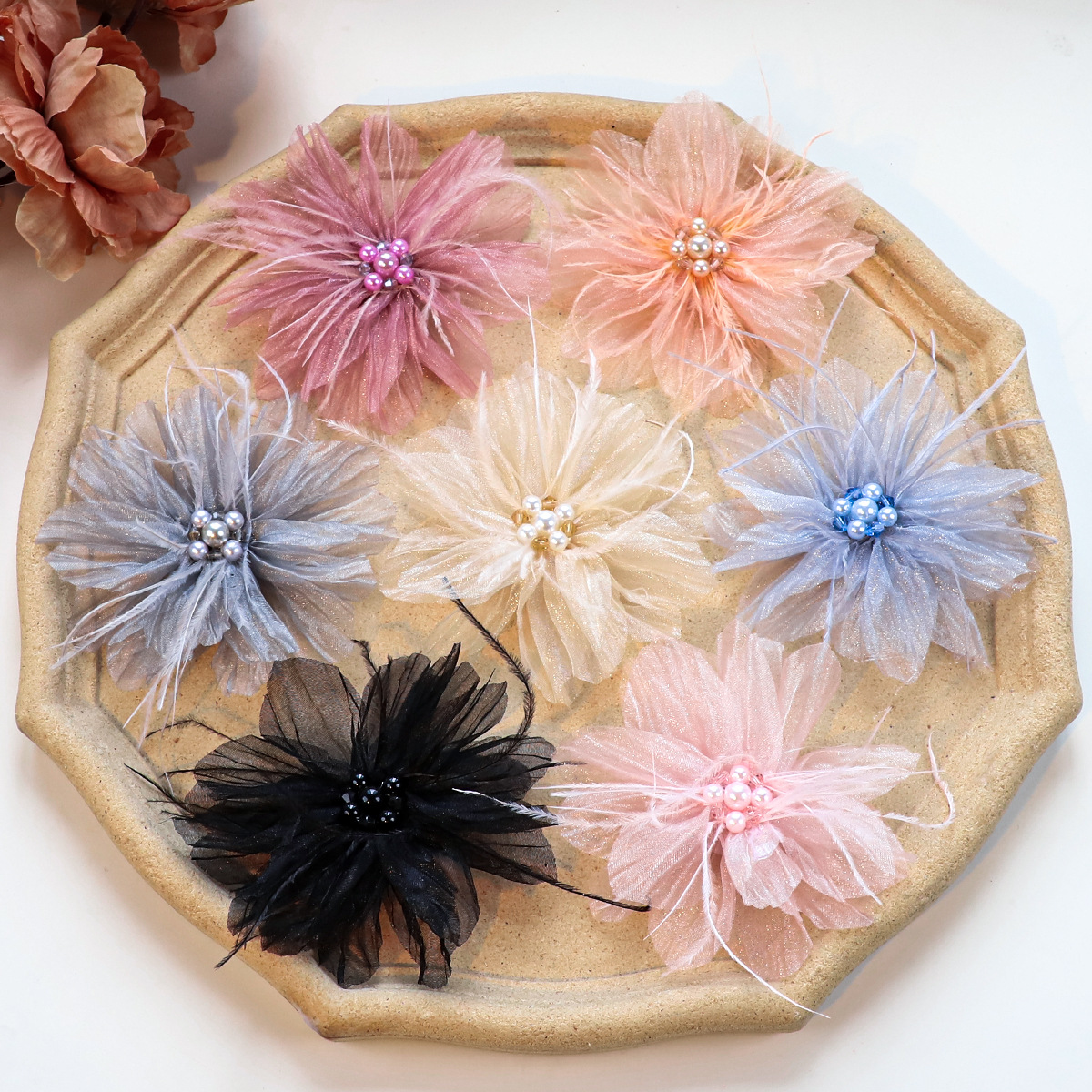 羽毛花朵辅料diy服饰配件百搭头饰胸花包包装饰纱花高级感褶皱花