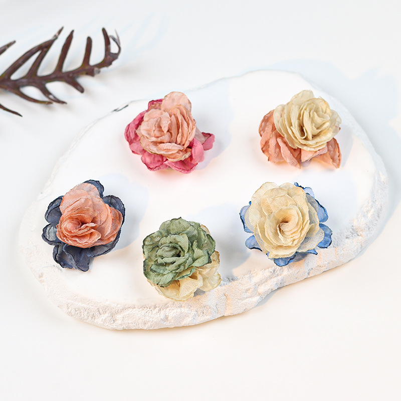 花DIYアクセサリー立体ヘアアクセサリー装飾品カラフルなシルクフラワー衣料品材料卸売オーガンジー花