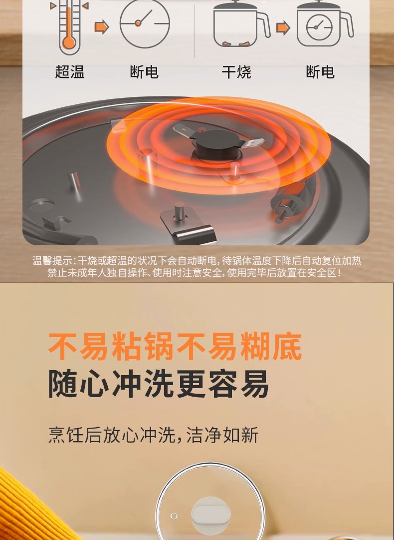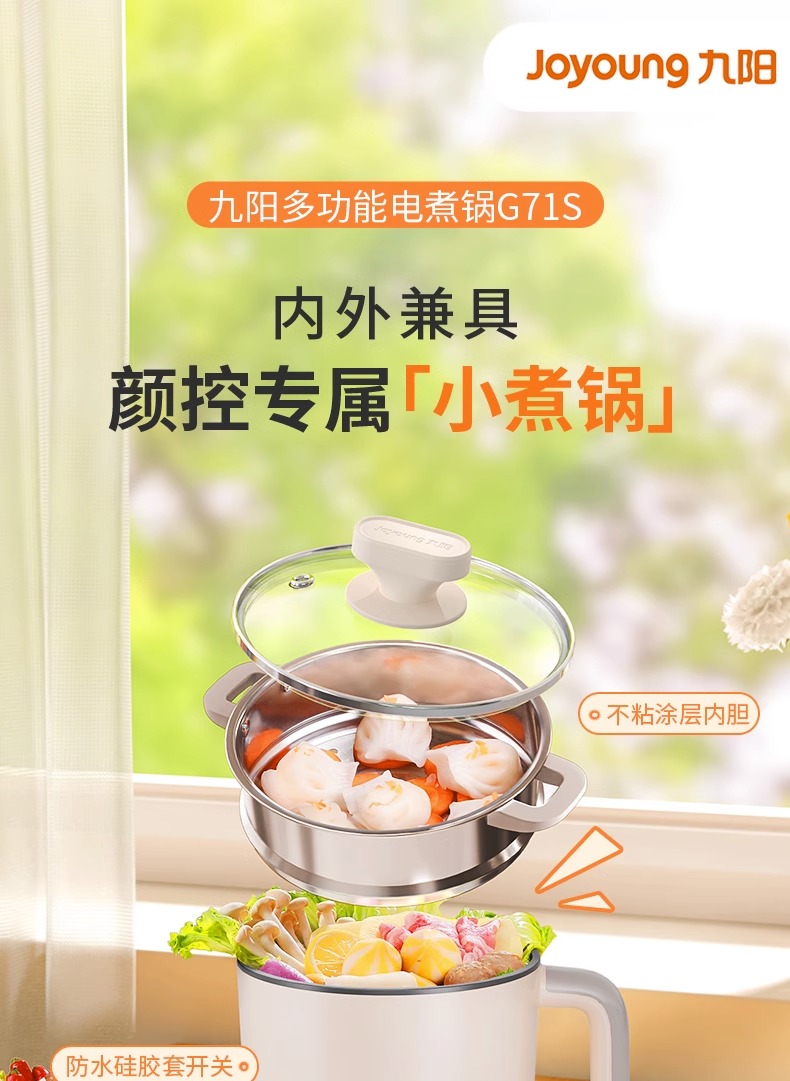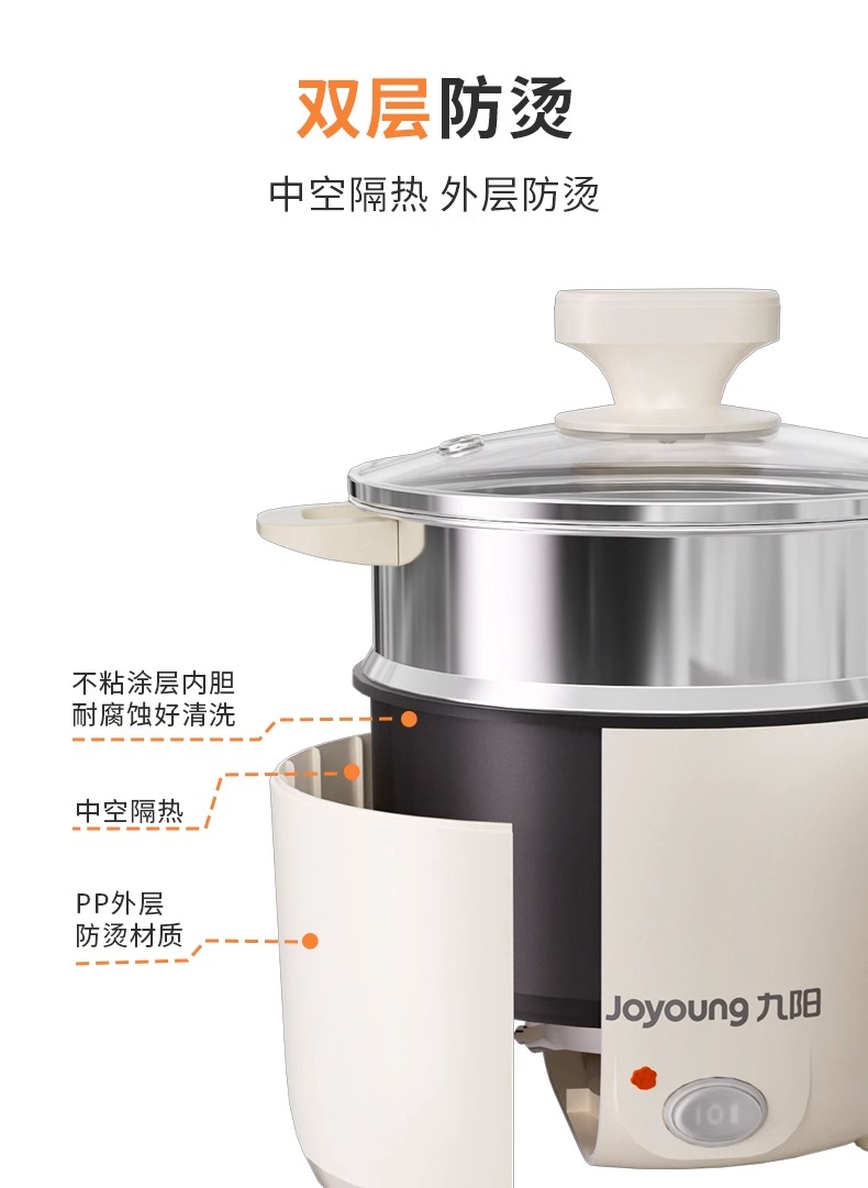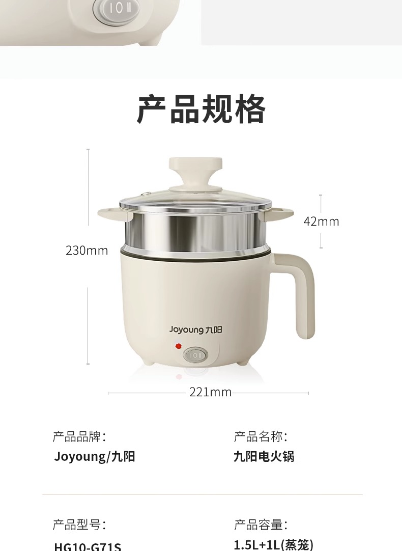 九陽電熱鍋HG10-G71S電気鍋小鍋学生寮電気煮鍋1-2人カップラーメン鍋