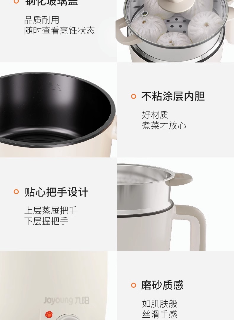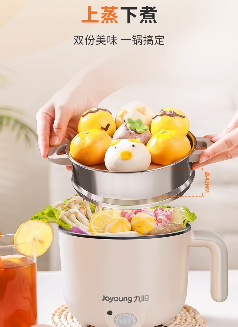 九陽電気煮鍋家庭用小電気鍋蒸煮一体電気鍋蒸し器蒸し器電気蒸し器HG25-G201S