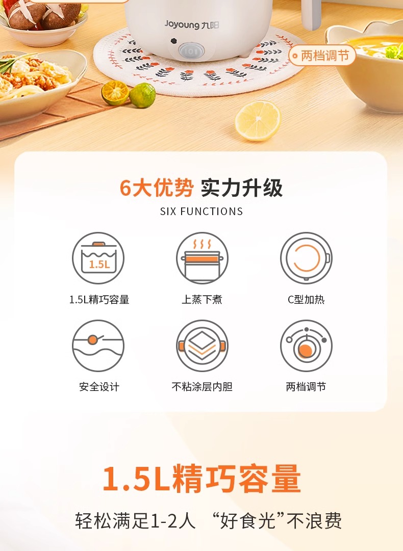 九陽電気煮鍋F-15Z605Bミニ電気鍋1-2人寮電気鍋カップラーメン電気鍋炊飯器