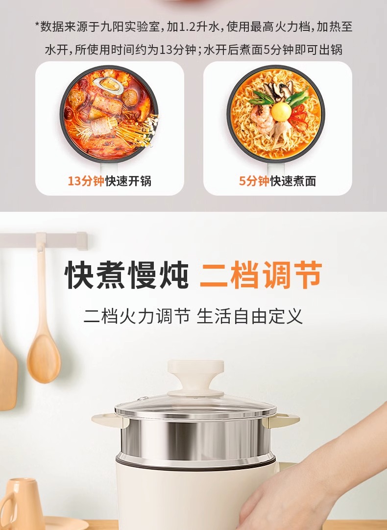 九陽多機能一体型鍋学生寮電気鍋小電力電気煮鍋蒸し鍋家庭用煮麺鍋GD76