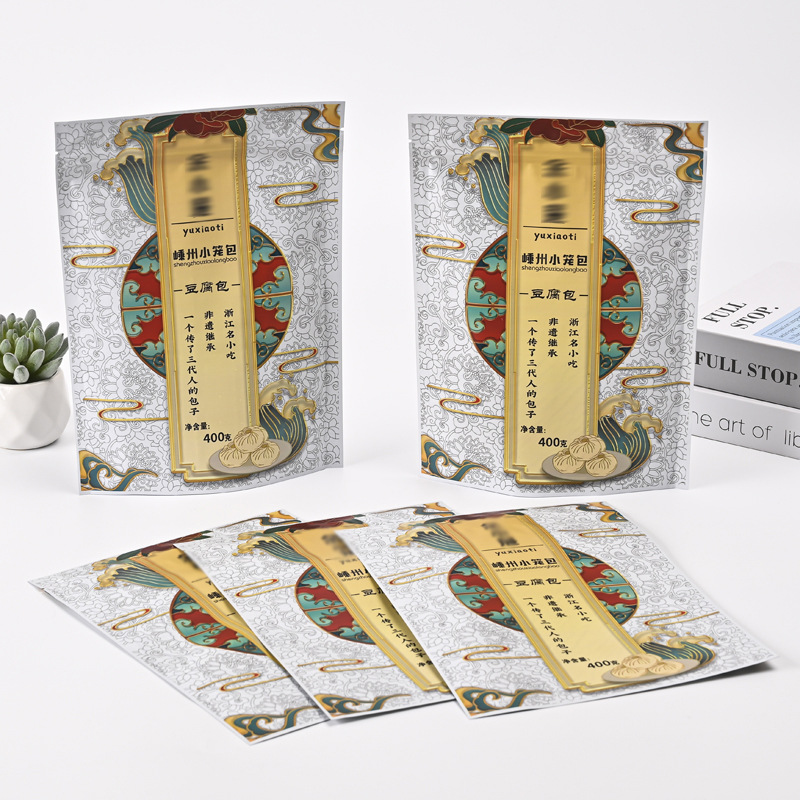 八方シールアルミ箔食品包装袋、冷凍・速食用セルフシール自立袋、スナック用三方シールジッパー袋