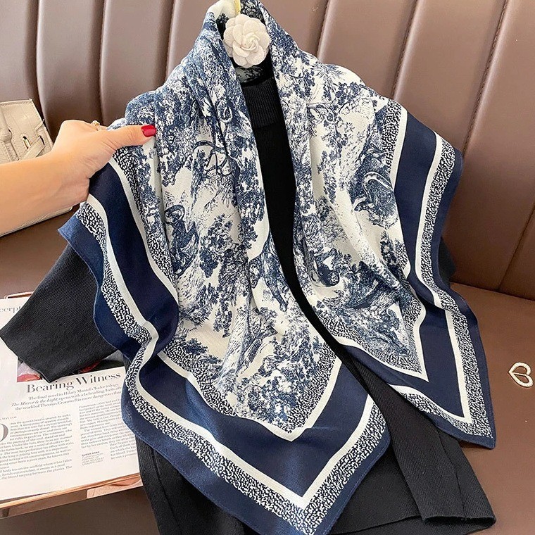 高級感のある水墨画風シルクウール素材の軽やかなラグジュアリースタイルのショール、柔らかく肌に優しいシルクスカーフ、おしゃれな外装、ギフトにも最適、多用途