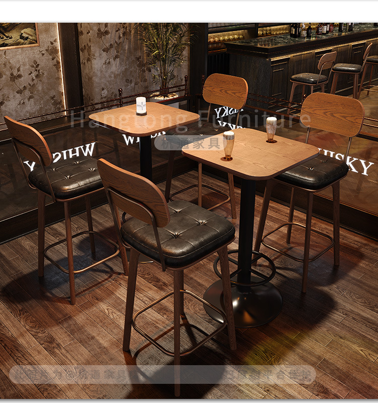 アメリカンパブのテーブルと椅子の組み合わせ、レトロなバーテーブル、無垢材のテーブル、ウイスキーバー、インターネットセレブのダイニングバー、ダイニングテーブルと椅子