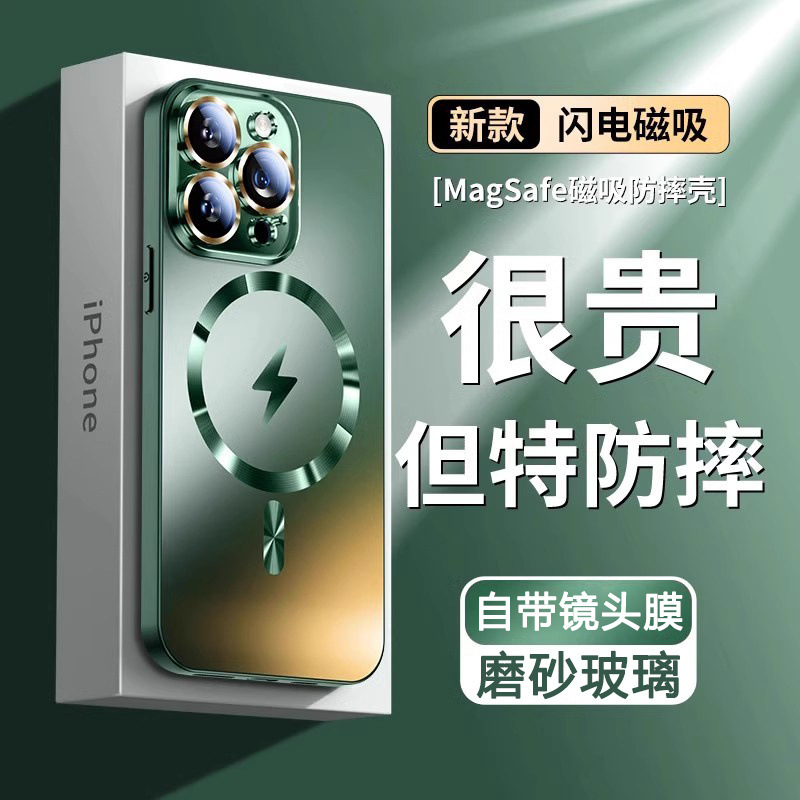 适用苹果12promax手机壳新款iPhone15磨砂玻璃14镜头全包保护套男