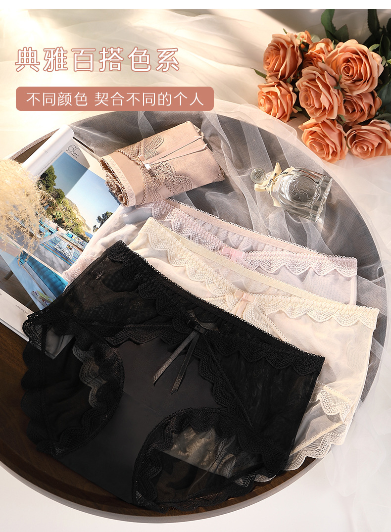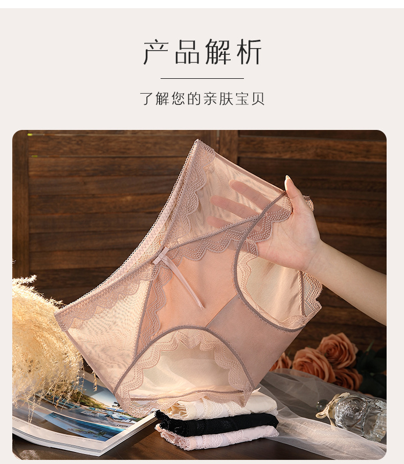 高颜值波点珠光内裤女复古缎面蕾丝花边中高腰舒适加肥大码三角裤